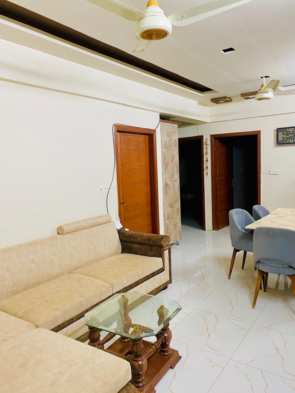 Enjoy a peaceful and fancy stay in this luxury yet budget-friendly 2-bedroom apartment located inside a secure, gated society. Sleeping Arrangements • 1 comfortable double bed • 2 sofa beds Apartment Highlights ✔ Fully equipped kitchen ✔ High-speed Wi-Fi ✔ Dedicated workspace for business ✔ Hot & cold water - 24/7 ✔ Free parking inside the society ✔ family-friendly environment 📍 Nearby Conveniences • Restaurants • Mosque • Public transport The balanced luxury, comfort, and convenience.