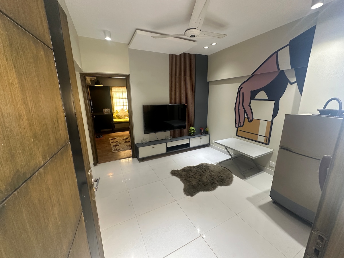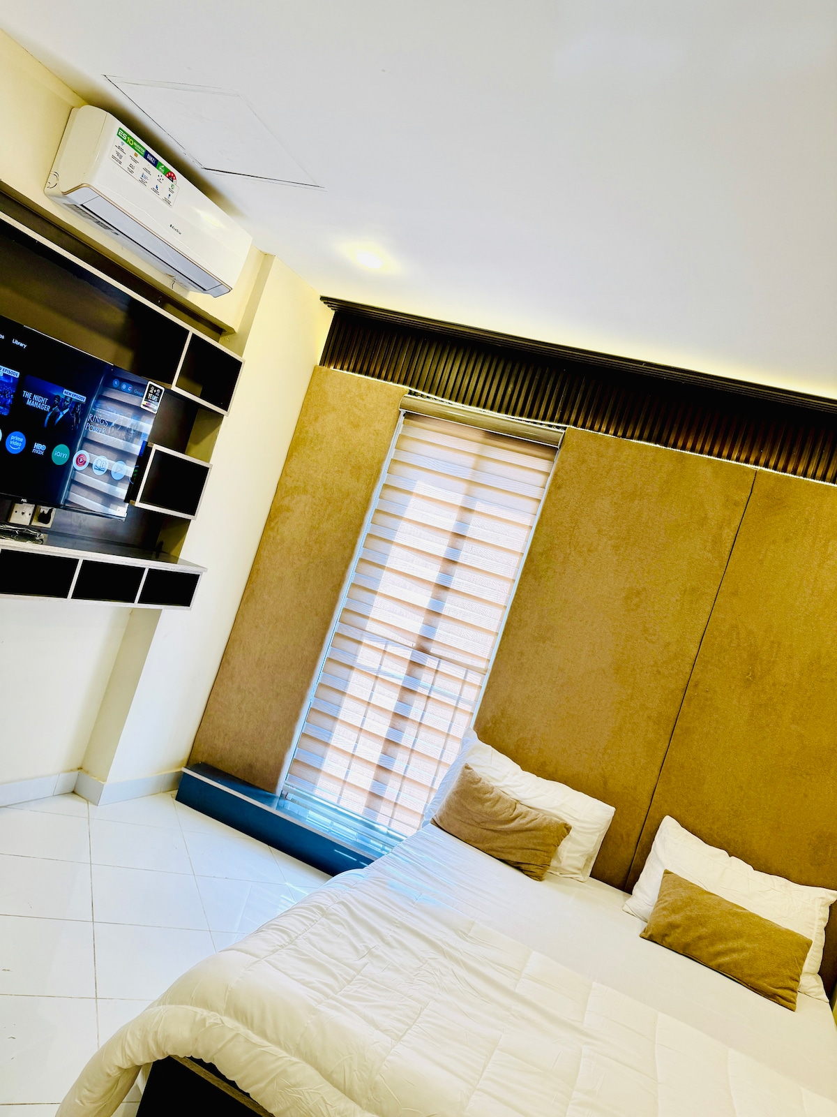 Enjoy a peaceful and fancy stay in this luxury yet budget-friendly 2-bedroom apartment located inside a secure, gated society. Sleeping Arrangements • 1 comfortable double bed • 2 sofa beds Apartment Highlights ✔ Fully equipped kitchen ✔ High-speed Wi-Fi ✔ Dedicated workspace for business ✔ Hot & cold water - 24/7 ✔ Free parking inside the society ✔ family-friendly environment 📍 Nearby Conveniences • Restaurants • Mosque • Public transport The balanced luxury, comfort, and convenience.