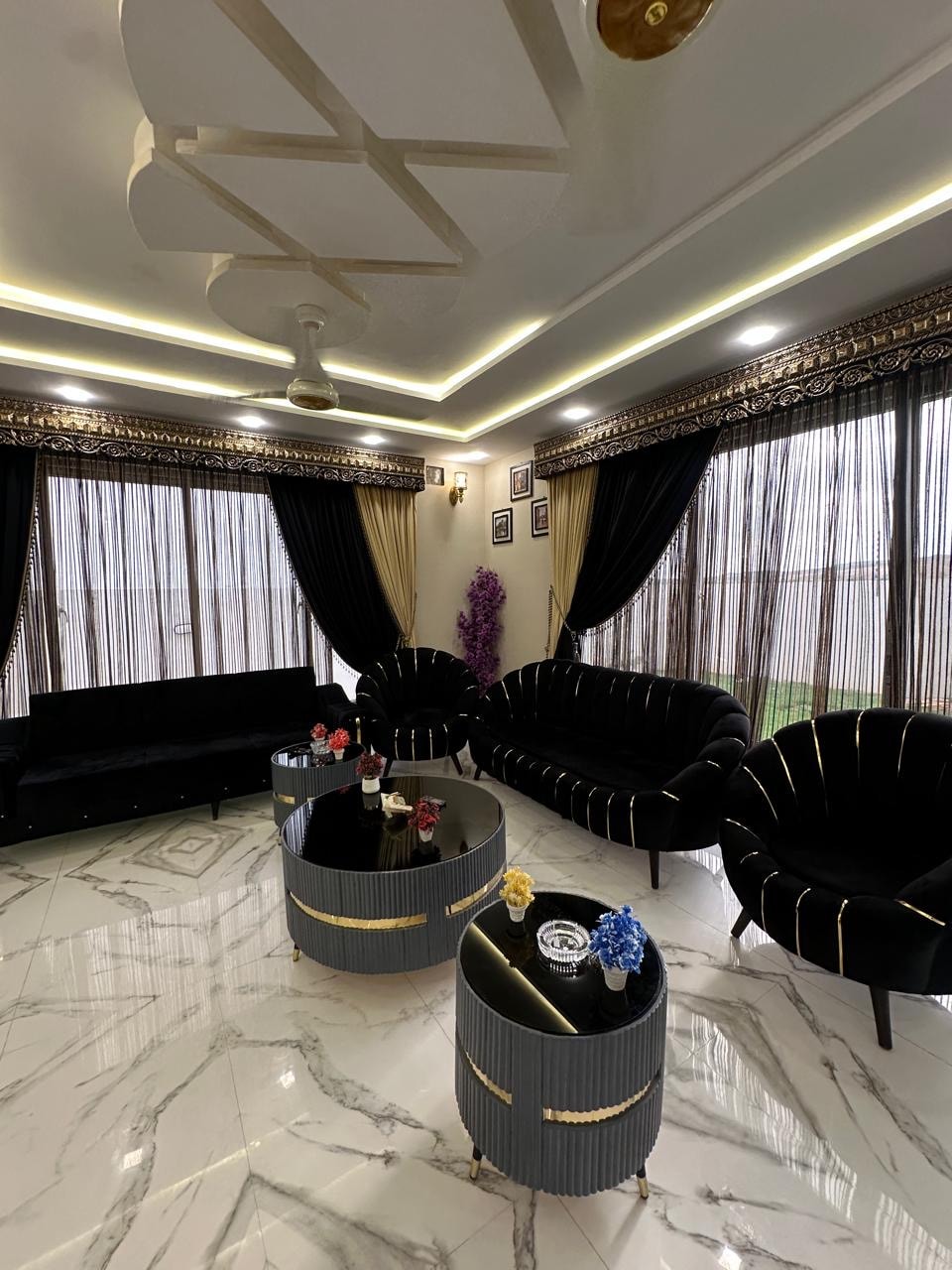 The Most Luxurious Designer Villa in Bahria Town karachi. In this fully furnished villa You will feel comfort, peace,view of nature, nearby Bahria’s most visiting place Called Murree point of karachi, Bahria adventure Land, Grand mosque, nearby find shopping gallery, dining and lots of entertainment options, making it perfact for families, couples or business travelers seeking a peaceful stay.