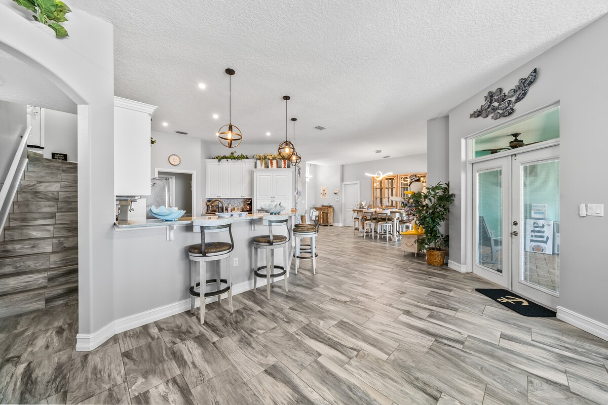 Unwind in this intercoastal waterfront paradise with breathtaking sunrise views over the Banana River. Spot turtles, dolphins & manatees from your private dock. Retreat into elegance with an upscale split floor plan coastal home with private pool. Mins from Cocoa Beach, Port Canaveral & Kennedy Space Center. Disney & Orlando are 40 mins away. 🐠🚣♂️ We provide kayaks, fishing poles, beach chairs & pool toys! Send us a message about the ultimate getaway with your own private pool & dock