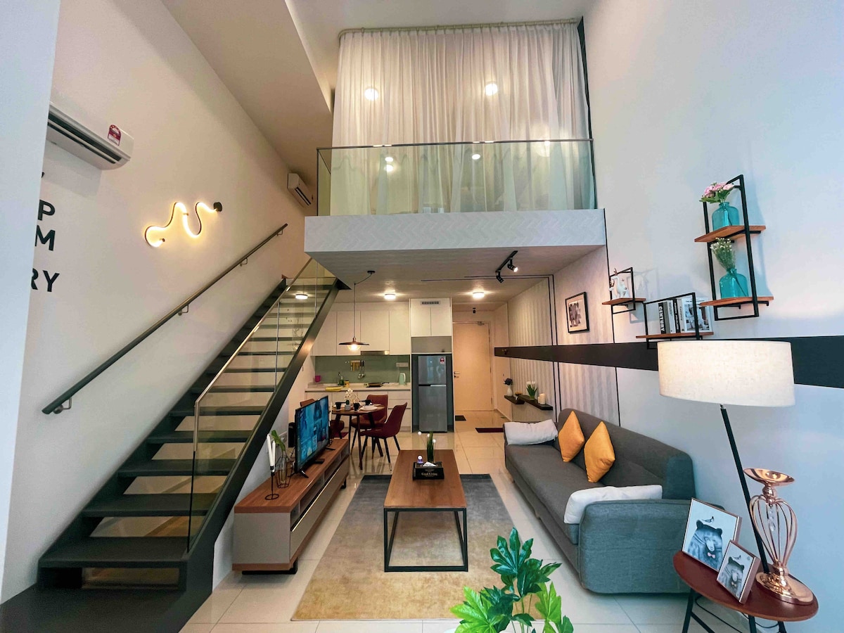 • Direct access to Hextar World Empire City Mall via secure basement link with onsite laundromat • Central PJ location – mins to IKEA, One Utama, Kidzania, supermarkets, banks, cafés, cinema & dining • Modern high-ceiling duplex loft with 2 balconies, cosy queen bed, organic mattress & pillows, equipped kitchen & quality appliances • 200Mb fibre WiFi, Netflix & work-friendly corner – ideal for staycations, business trips, weekend getaways & small families