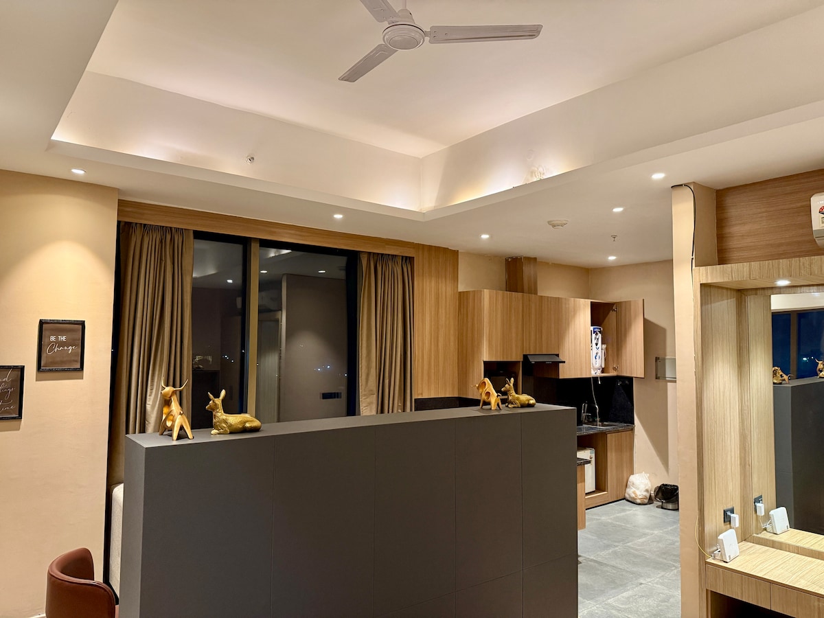 🤍Stafilx and Chill🤍 Premium 1BHK Studio on Golf Course Road with fast Wi-Fi, Netflix, and a private balcony. Ideal for business travelers, couples, and long stays near Cyber Hub. Thoughtfully designed for comfort and convenience, this studio offers a hotel-like experience with the privacy of home. Experience a seamless stay at Stafilx and Chill, an oversized 840 sqft.