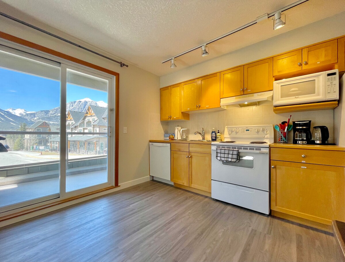 * Parkade von Mitte April bis Ende Mai geschlossen; Parken nur auf der Straße möglich.* Unsere schöne Wohnung befindet sich in einem der Top-Resorts von Canmore mit ganzjährigem Zugang zum Whirlpool und beheiztem Pool. Wir sind einen 20-minütigen Spaziergang von der Innenstadt von Canmore mit Wander- und Radwegen in der Nähe entfernt. Suchst du ein zweites Zuhause? Unsere Wohnung ist komplett bestückt, um alle Ihre Mahlzeiten zu kochen, mit einem bequemen Kingsize-Bett, Zugang zur Terrasse und einem atemberaubenden Blick auf die Berge mit Blick auf den Pool/Whirlpool. Bleib eine Weile, du wirst es lieben!