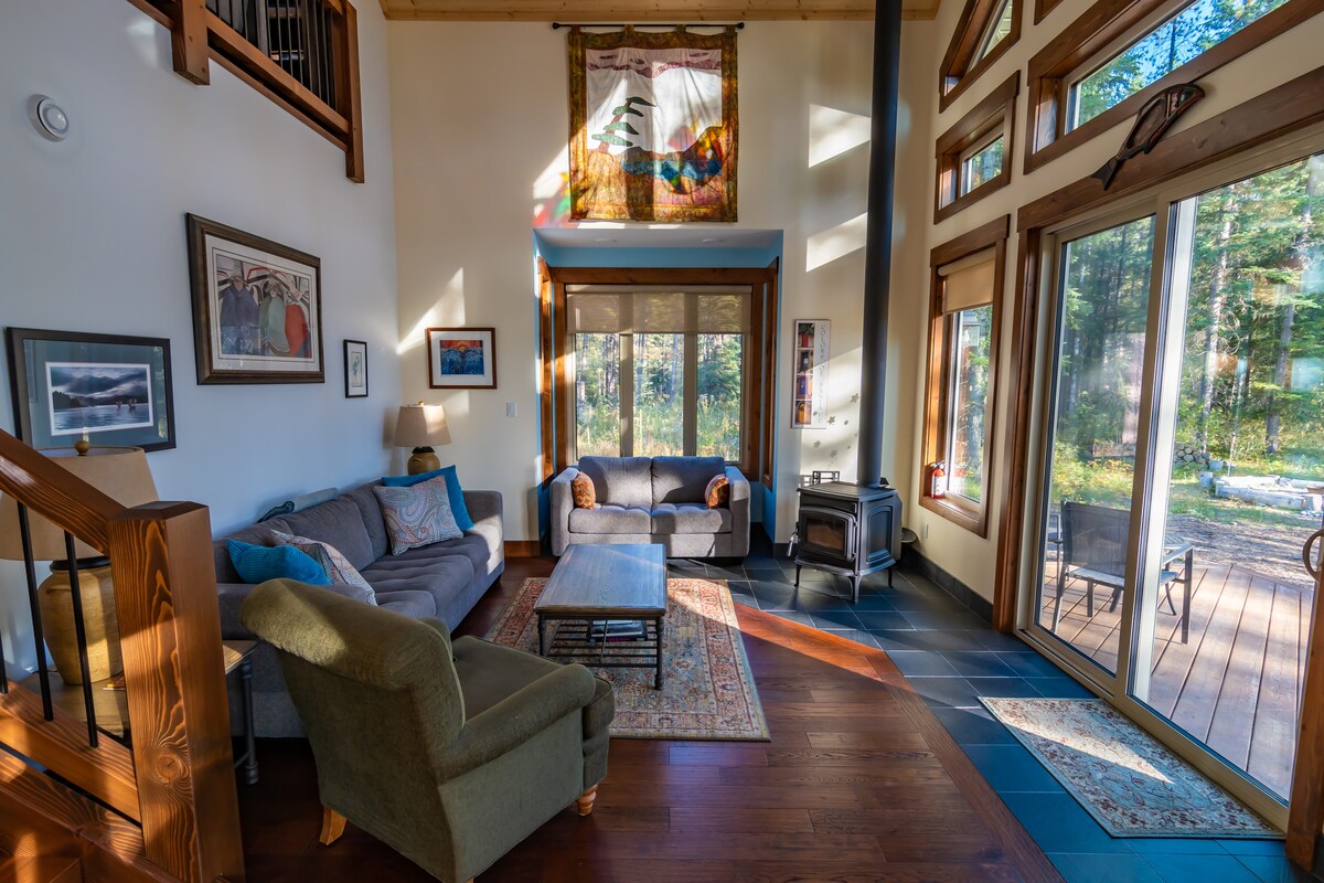 MOONRAKER MOUNTAIN MöKKI (Finnish for cabin) - 7 p. hot tub - outdoor fire pit - media room with projector screen/Netflix - 500 ft deck/heated screened room - wood burning fireplace - covered BBQ - 100 km of field, forest, river trails at your doorstep - indoor/outdoor games - SUP/canoe rentals, parasailing 1 km away - 25 mins to Kicking Horse resort - nearby sledding/atv trails, golf, Skybridge, river rafting, wolves, climbing, disk golf, restaurants - Claire and Matt live beside the mökki.