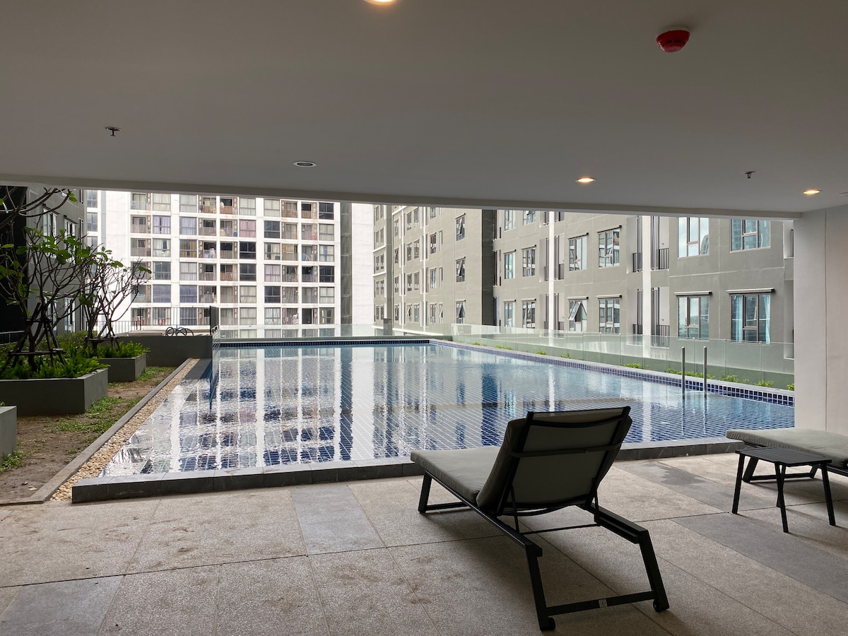- Komplett mit gemeinsamen Einrichtungen, um Ihr Leben komfortabler zu machen, jede sorgfältig gestaltet, damit Sie unbegrenzten Komfort und Genuss haben können. - Voll ausgestattete, komfortable Bettwäsche, um die Müdigkeit des Tages loszuwerden, du kannst hier auch dein Lieblingsessen kochen. Zusammenfassend lässt sich sagen, dass du dich hier wie zu Hause fühlen kannst. Neu renoviertes Zimmer in einem neuen Gebäude (2025). Gemütlich, einfach zu erreichen mit vielen Einrichtungen, z. B. Pool, Fitnessraum, Arbeitsbereich, Kinderspielzimmer. Yogaraum, Besprechungsraum Nur 30 Minuten vom Herzen von BKK entfernt. 400 m von BTS Wutthakat. 3 Minuten bis Talat Phlu 8 Minuten bis Wat PakNam Bhasicharoen (Watermon Tempel) 15 Minuten von ICON SIAM 20 Minuten von der Silom Road entfernt 30 Min. von Siam Paragon/MBK/Central World Langzeitaufenthalt erlaubt.