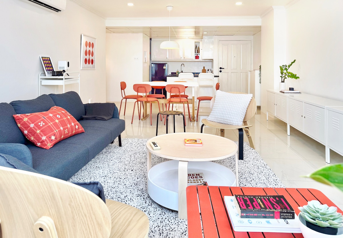 The Mango House (Asok) – Gemütlich, unterhaltsam, beste Lage (für bis zu 4 Gäste) 🚆 8 Gehminuten zu BTS & MRT 🛏 Geräumiger Aufenthalt für bis zu 4 Gäste (verhandelbar, wenn mehr) gegen einen kleinen Aufpreis – die gesamte Einheit (43 qm) verfügt über 1 Kingsize-Bett im Schlafzimmer und 1 Schlafsofa im Wohnzimmer, das in ein bequemes, volles 7-Fuß-Bett erweitert werden kann 📽 Vollbildprojektor mit Streaming-Zugang Badewanne 🛁 in der Unterkunft 🚬 Chillen auf dem Balkon 🏊 Pool (schwimmendes Bett vorhanden) 🏡 Alle zur Verfügung gestellten Notwendigkeiten (z. B. WLAN, Waschmaschine/Trockner, Föhn usw.)