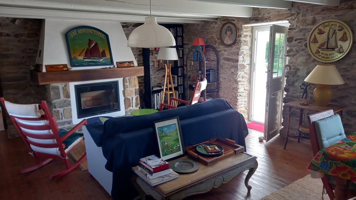 Longère en pierre de 120 m2 rénovée, sans vis à vis, avec un grand jardin plein sud non clos dans un hameau très calme, à un kilomètre de Bangor (sa supérette, son marché le dimanche matin, sa crêperie "chez Renée") et en descendant par le vallon, à 800m à pied de la plage de Kerel, où les enfants peuvent se baigner en toute sécurité, .