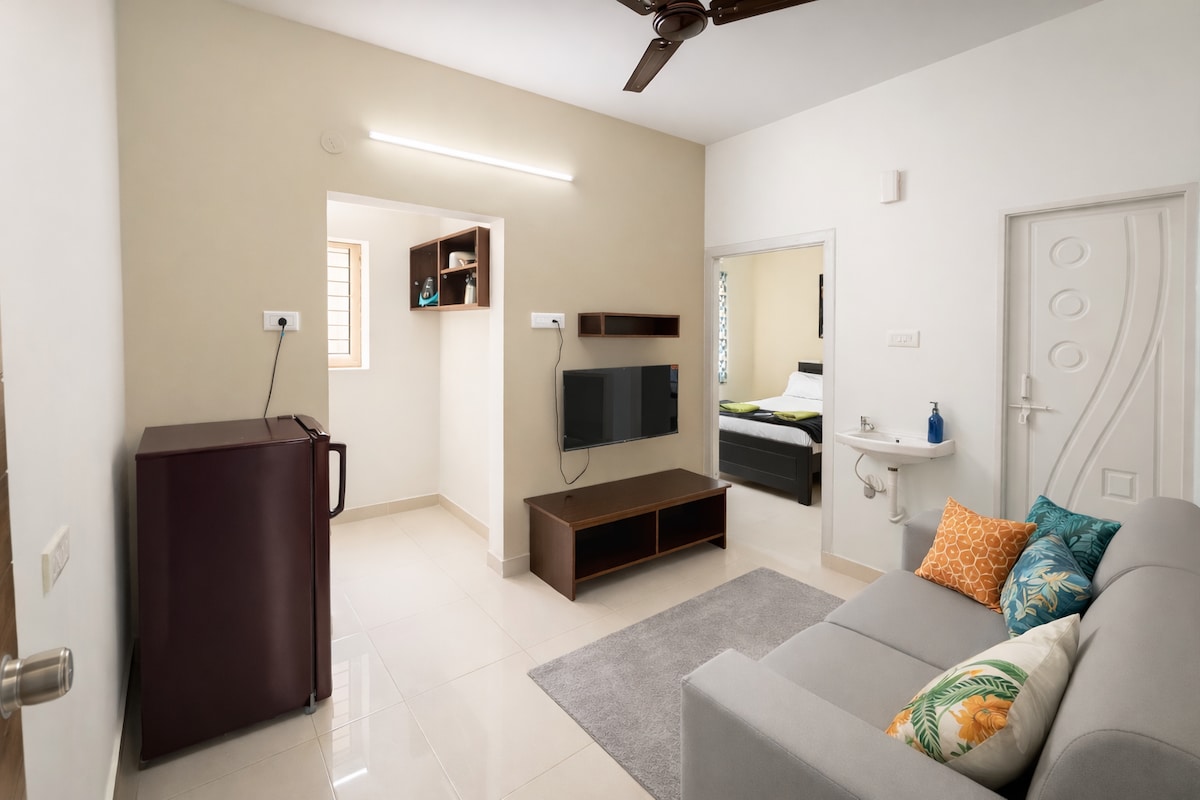 Unsere 2BHK-Wohnung ist ein gemütlicher Ort, der sich perfekt für Familien, Freunde oder sogar Geschäftsreisen eignet. Es ist geräumig und verfügt über alles, was du brauchst – komfortable Schlafzimmer, einen entspannten Wohnbereich und eine Küche, wenn du Lust zum Kochen hast. Die Lage ist super praktisch mit einfachem Zugang zu Essen, Einkaufsmöglichkeiten und Verkehrsmitteln. Einfach, sauber und komfortabel – genau so, wie ein Aufenthalt sein sollte. Um das Ganze abzurunden, bieten wir auch einen Aufzugszugang Wir haben auch zusätzliche Bestimmungen •Wasserspender •Mikrowelle •Küchenzubehör