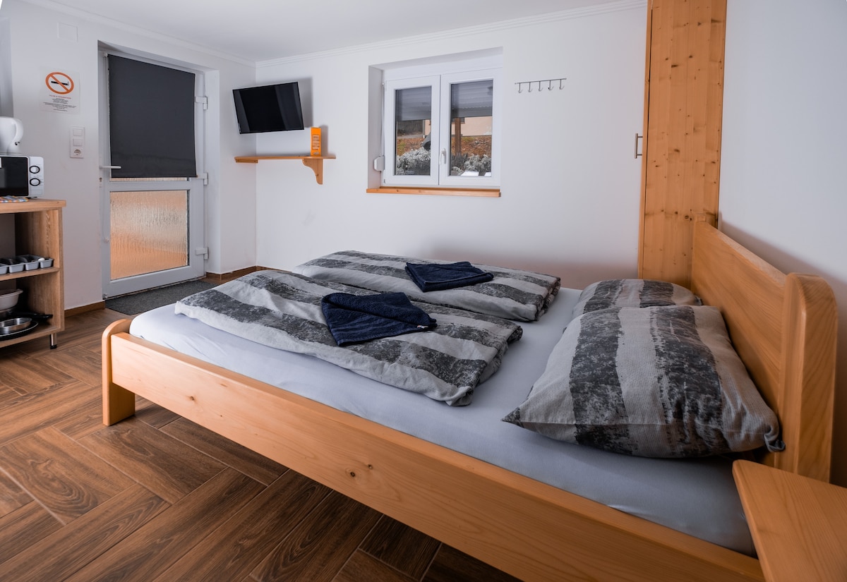 5-Personen-Ausstattung - in erster Linie für Familien mit 2-3 Kindern Wohnung zu vermieten (28m2) empfohlen. Es ist 30 Meter vom See Pécs, mit Panoramablick auf Fsz, mit Balkon,Klimaanlage. Sie verfügt über 1 Schlafzimmer mit französischem Bett und Galeriebett (3 Personen), Wohnzimmer mit großem L-förmigen Klappbett. Gut ausgestattete Küche, Kaffeemaschine, Wasserkocher, Mikrowelle, Kochplatte, Backofen, Kühlschrank. Kaffee und Tee stehen kostenfrei zur Verfügung. Für unsere Gäste WIFI, Kabel-TV nutzen.