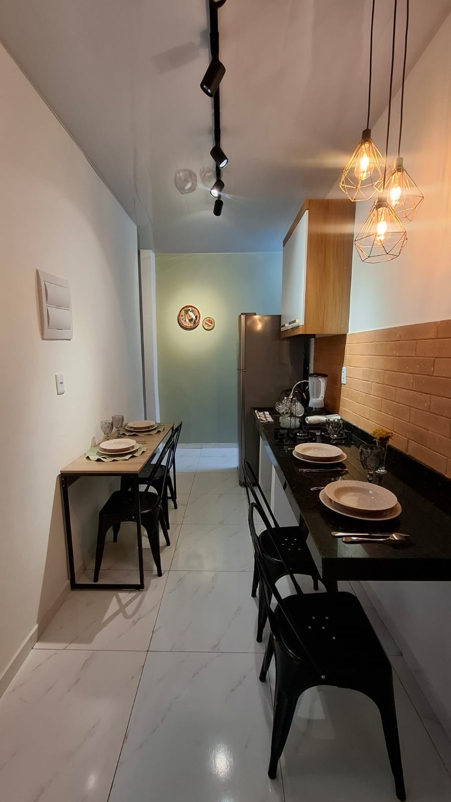 Apartamento excelente para casal com cama queen size e possibilidade de ate 4 pessoas com o sofá cama localizado na sala. Dois banheiros completos com chuveiro elétrico e ar condicionado em todos os ambientes. Garagem para um veículo. Cozinha com geladeira duplex, fogão a gás com forno e filtro duplo de água. Smart Tv de última geração 4K na sala e quarto.Internet de fibra ótica de alta velocidade, espaço para home office no andar superior(para maior conforto e produtividade). Lava e seca roupas