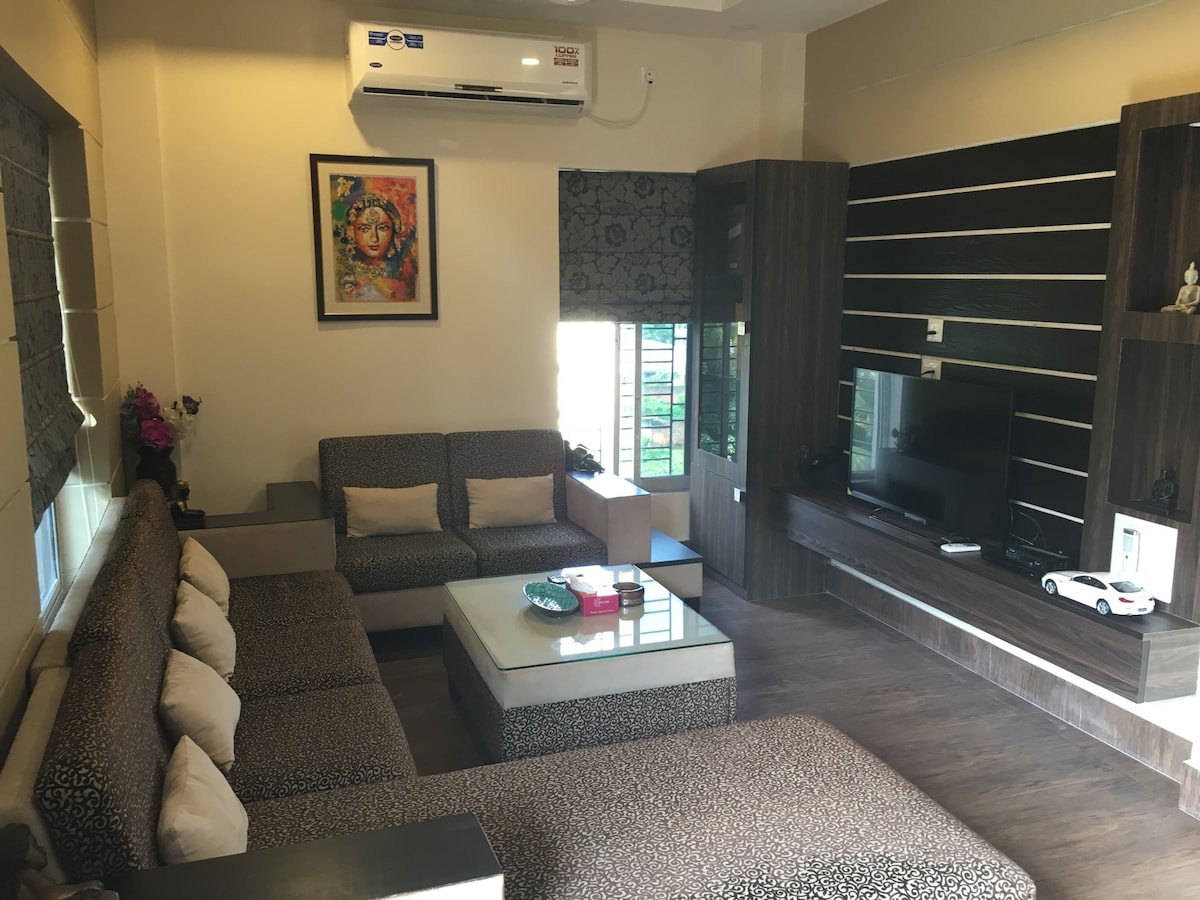 Eine gemütliche 1BHK-Unterkunft in einer ruhigen und friedlichen Umgebung, in der man sich inmitten der Natur mit einem heimeligen Gefühl erholen und entspannen kann. Sie verfügt über eine voll funktionsfähige Küche. Du erhältst kostenloses Highspeed-5G-Internet über WLAN, das für die Fernarbeit sowie das Streamen deiner Lieblings-OTT-Inhalte (Netflix, Amazon Prime, Hotstar, Apple TV, Hoichoi usw.) über Smart-TV verwendet werden kann. Erhalte Zugang zum Fitnessstudio und zu Indoor-Sportarten wie Tischtennis, Badminton, Carrombrett und Pool.