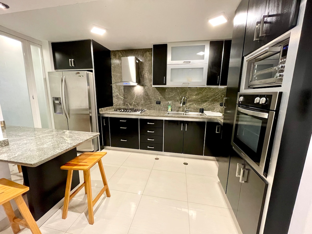 Genieße Mérida von einer komfortablen Wohnung in der besten Gegend der Stadt aus. Nur 5 Minuten von der Seilbahn, dem historischen Zentrum und den Einkaufszentren entfernt. Zwei Schlafzimmer: eines mit einem Queensize-Bett, ein privates Badezimmer und ein TV; ein weiteres mit einem Doppelbett. Ein Wohnzimmer mit TV, Esszimmer, ausgestattete Küche, Waschmaschine, Arbeitsbereich und WLAN. Stabiler Strom täglich rund um die Uhr. Erdgeschoss in privater Residenz mit Überwachung, Zugang mit der Av. Las Americas und Av. Los Próceres. Komfort und Sicherheit an einem Ort!