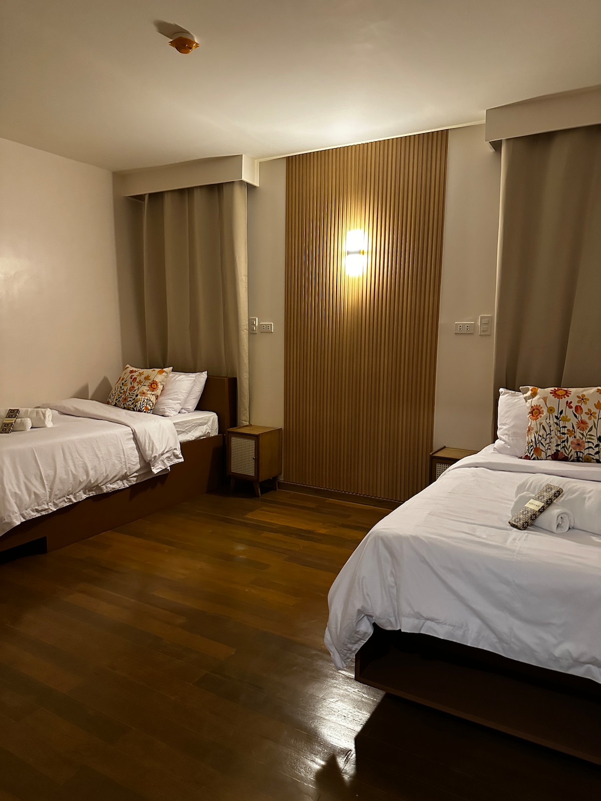 Familienfreundliche Unterkunft. Die Unterkunft ist sehr neu und in der Nähe des Zentrums. Vom Pass City Arena dauert es etwa 5-10 Minuten mit dem Motorrad. Sie befindet sich im 2. Stock und die Aussicht von dieser Einheit ist ein Pluspunkt. Mit Blick auf den Berg, wo der Sonnenaufgang aufgeht. Mit grüner Landschaft. Das Wohnzimmer verfügt über eine Fensterklimaanlage, in der du dich entspannen und die Landschaft genießen kannst, während es draußen heiß ist. Mit kostenlosen Parkplätzen und schnellen WLAN-Verbindungen.