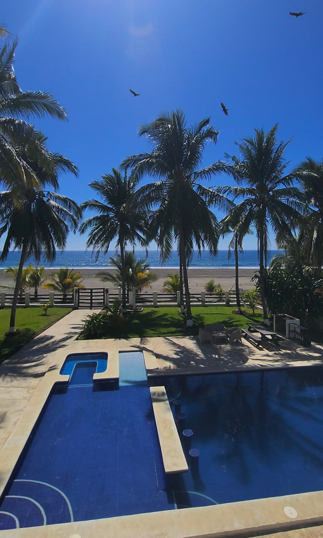 KasaMar Luxurious Villa is located directly on the pristine, private beach of Playa Dorada in El Salvador. Enjoy breath-taking sunrise and sunset views from the comfort of the stunning pool deck, relax in the ocean view pool, and explore all the beauty that El Salvador has to offer. This gorgeous, stylish villa is perfect for families, couples, surfers, and travelers. Stretches of sandy beach are just (literally) steps away as the property sits directly on the beach. You can't miss this!