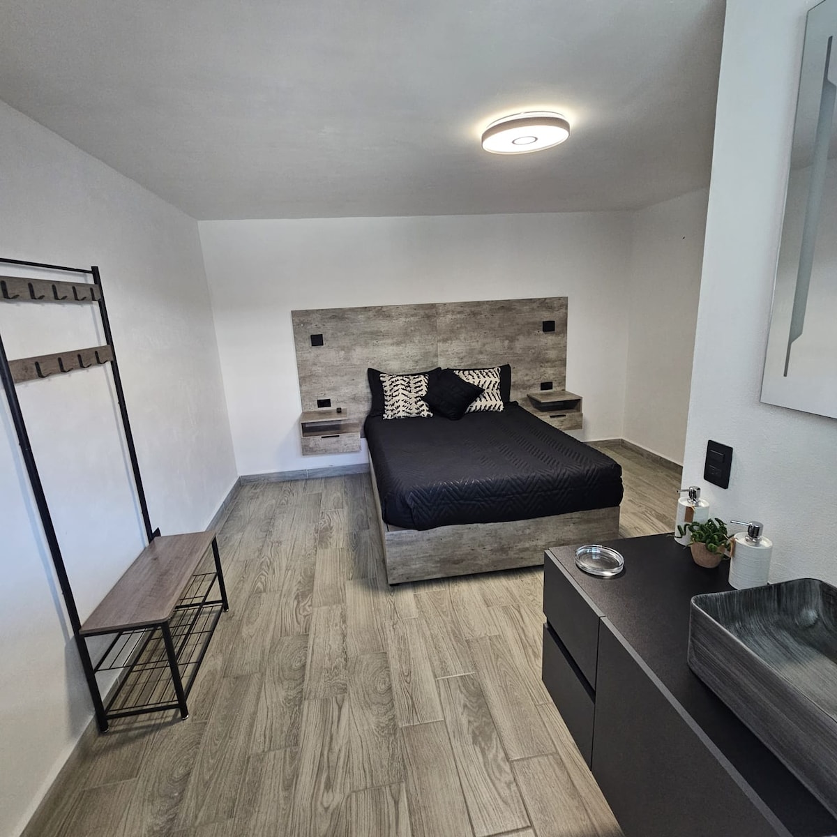 Geräumige minimalistische Wohnung (kürzlich eingerichtet). Es verfügt über ein voll möbliertes Wohnzimmer und Esszimmer, einen TV-Raum mit 32-Zoll-Bildschirm, eine Küche mit Kühlschrank und Mikrowelle, 2 Badezimmer mit Annehmlichkeiten, 2 voll möblierte Schlafzimmer, das Hauptschlafzimmer mit einem Badezimmer, Holzböden, Wandschränken und zusätzlich ein Doppelschlafsofa. Es verfügt über 1 Parkplatz, High-Speed-Internet und Netflix.