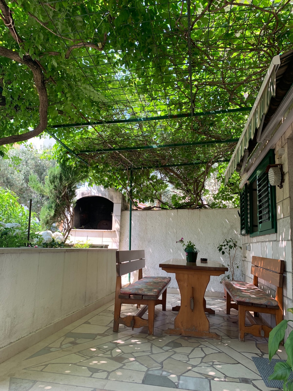 Ground floor apartment, suitable for 4 persons, large patio, bbq, free parking, flat screen TV, wifi and A/C Apartment is in quiet street 50m from Nikolina beach and 150m from town center.