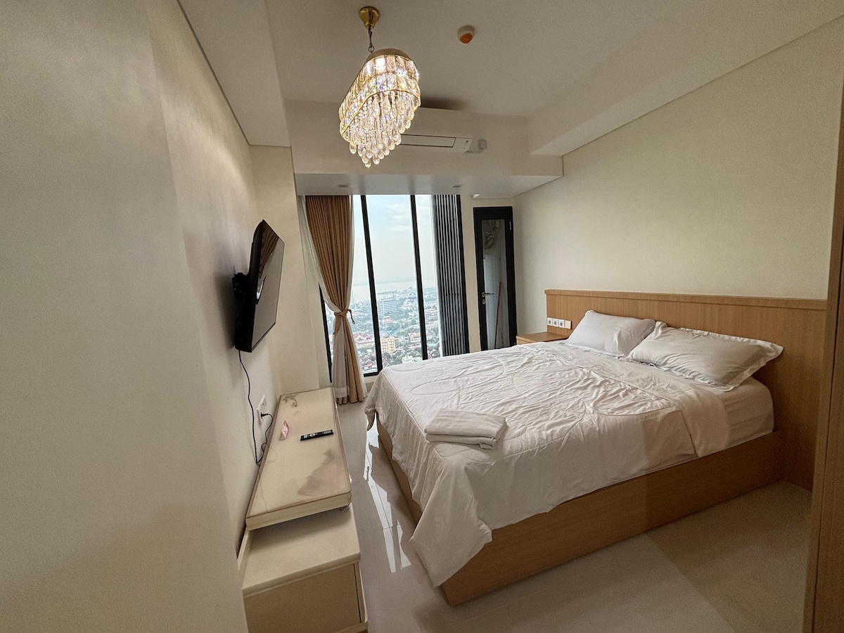 *Schicker Rückzugsort im Hochhaus Pollux Habibie Apartment 🏙️* Genieße einen luxuriösen Aufenthalt in unserer neu renovierten Wohnung im Obergeschoss mit atemberaubenden, raumhohen Fenstern. Im Pollux Habibie Apartment Tower gelegen, hast du einfachen Zugang zu beliebten Restaurants 🍱 wie KFC, Starbucks und JCo. Nur 15 Minuten vom Batam Centre Ferry Terminal entfernt, ist sie perfekt für einen Wochenendurlaub oder einen längeren Aufenthalt. Buche jetzt für ein unvergessliches Erlebnis!