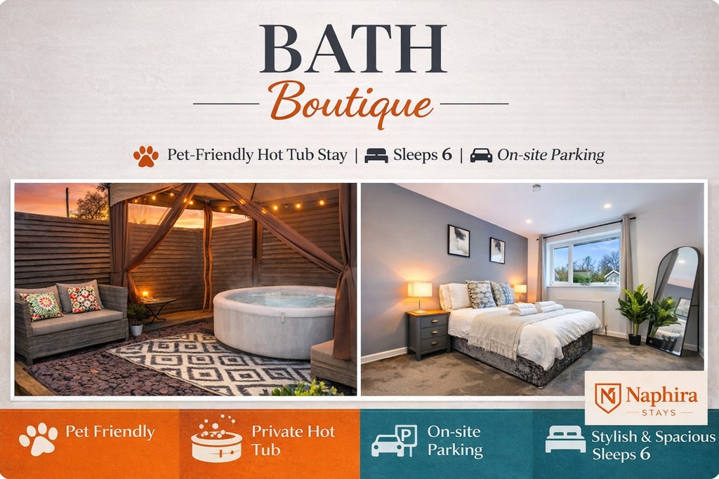 *The Bath Christmas Market dates for 2025 are Thursday, November 27th, to Sunday, December 14th.* Situated in the heart of Bath on Alfred Street, this charming flat offers you your own private front door and immediate access to the city’s vibrant lifestyle. Just steps from beautiful independent shops, cosy bars and renowned restaurants, it’s the perfect base to immerse yourself in everything Bath has to offer. Enjoy a tranquil escape complete with a festoon-lit copper outdoor bath.