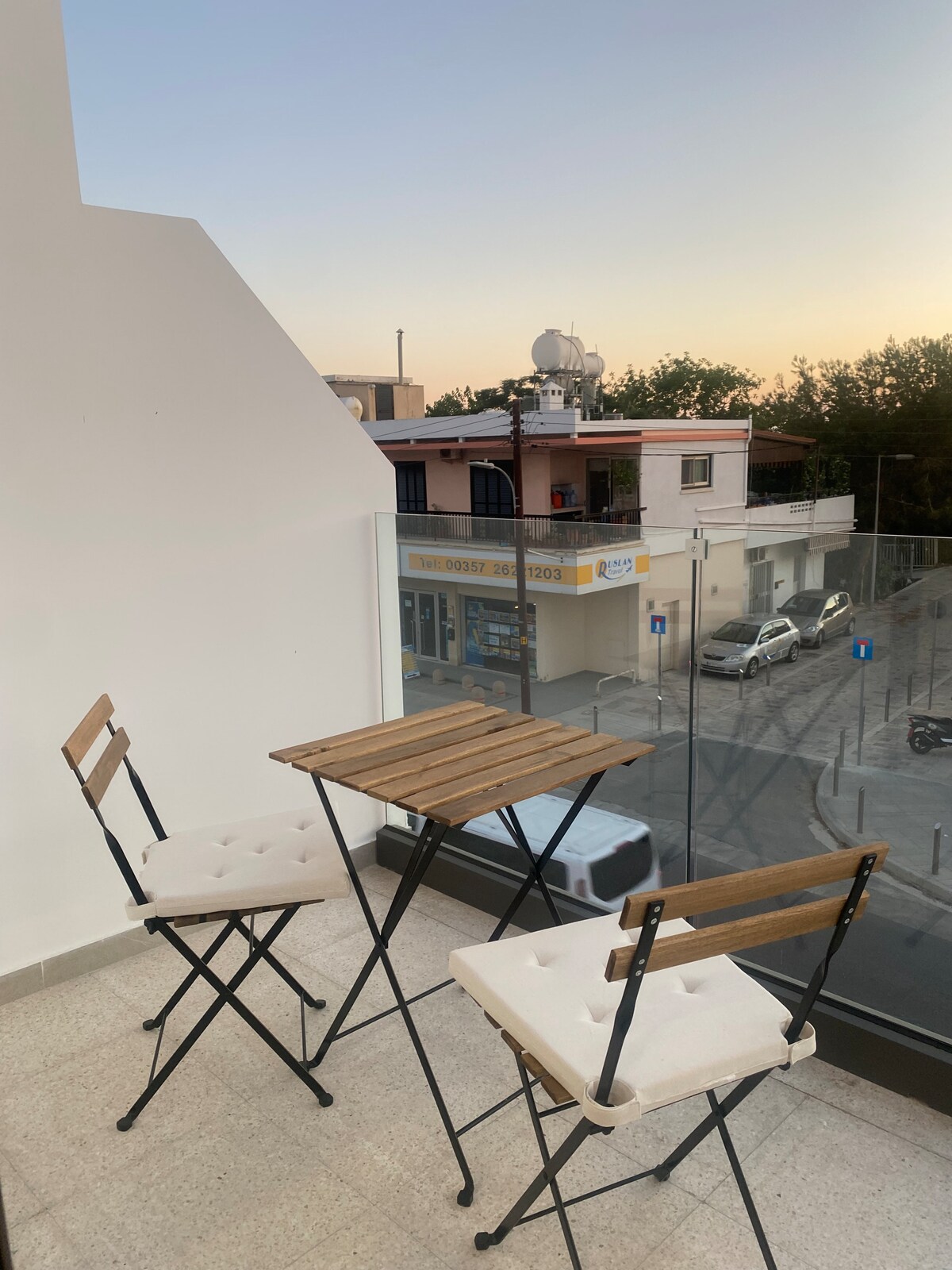 Ruhige und romantische Balkonwohnung mit Schlafzimmer mit Doppelbett, Wohnzimmer, Küche, Badezimmer mit Badewanne und Dusche, herrlichem Meer- und Sonnenuntergangsblick. Sieh und höre das Meer von deinem Bett aus, schwimme in der Bucht oder im Gemeinschaftspool, speise im Freien auf dem Balkon mit Meerblick oder in lokalen Restaurants.