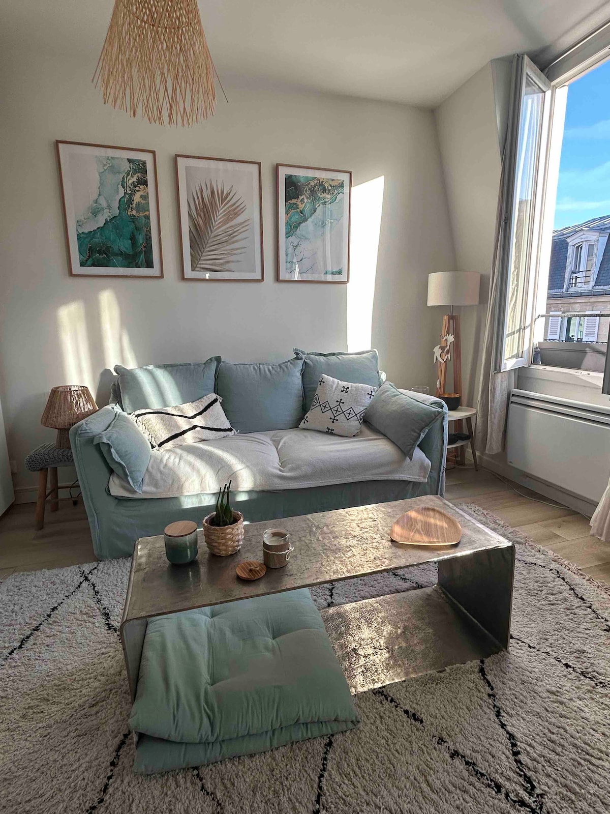 Boutik Bohème is a collection of unique and characterful apartments located in Paris’ most authentic and sought-after neighborhoods. Le Loft Batignolles is a beautiful 1-bedroom apartment with a sofa bed in the living room, located just 5 minutes from La Fourche, Place de Clichy and Pont Cardinet metro stations. Superbly equipped and tastefully decorated, it offers a stylish retro atmosphere and a comfortable setting for a pleasant stay in Paris.