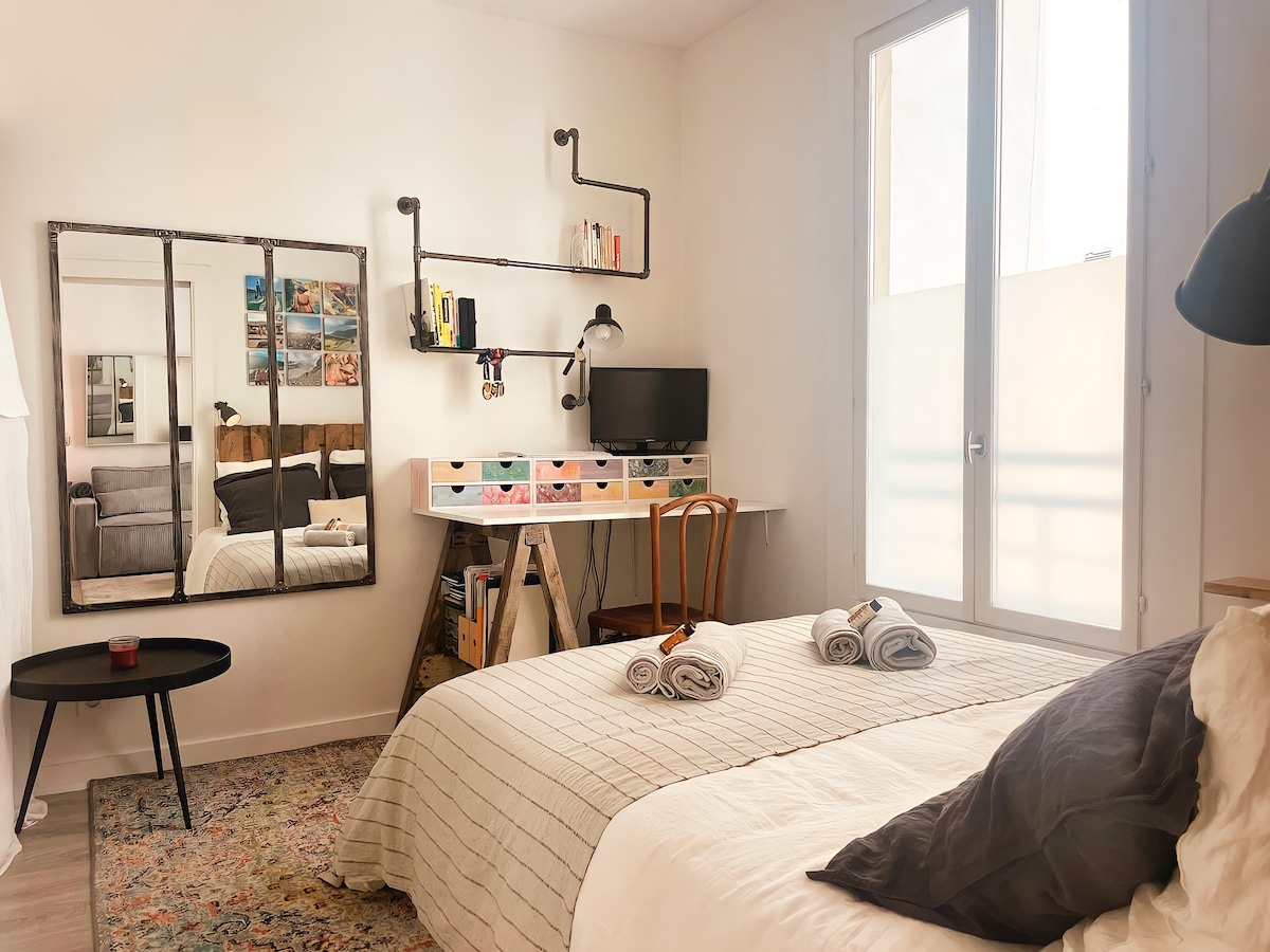 Entdecken Sie Paris und seinen Charme in einer ruhigen und hellen Umgebung. Dieses Studio ist so konzipiert, dass es komfortabel ist (viele Annehmlichkeiten: TV The Frame 55", Nespresso-Kaffeemaschine, Milchschäumer, Toaster, Backofen, beheizter Spiegel, Waschmaschine, Trockner usw.), wird Sie willkommen heißen, damit Sie sich in dieser Stadt mit tausend historischen Stätten wie zu Hause fühlen. Ich empfehle die Bäckerei Damiani um die Ecke, die Ihnen den Geschmack eines Buttercroissants aus meiner Kindheit vermitteln wird.