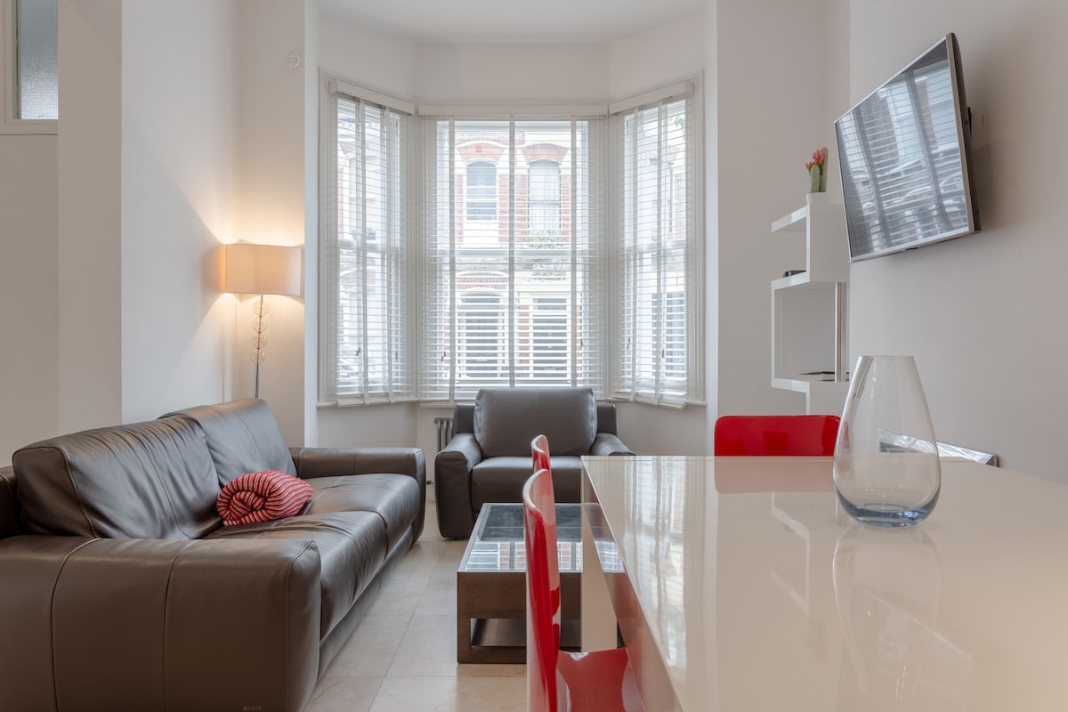 Eine ruhige Oase im Herzen von Notting Hill. In einer ausgezeichneten Lage, nur wenige Minuten vom Kensington Palace und Hyde Park entfernt, ist diese Wohnung stilvoll und hell. Perfekt für zwei Gäste. Bitte beachte, dass sich die Wohnung im ersten Stock (in einigen Ländern zweiter Stock) befindet und steile Treppen erfordert, die für Personen mit eingeschränkter Mobilität oder ältere Gäste eine Herausforderung darstellen können. Bitte überlege dir dies, bevor du deine Buchung abschließt.