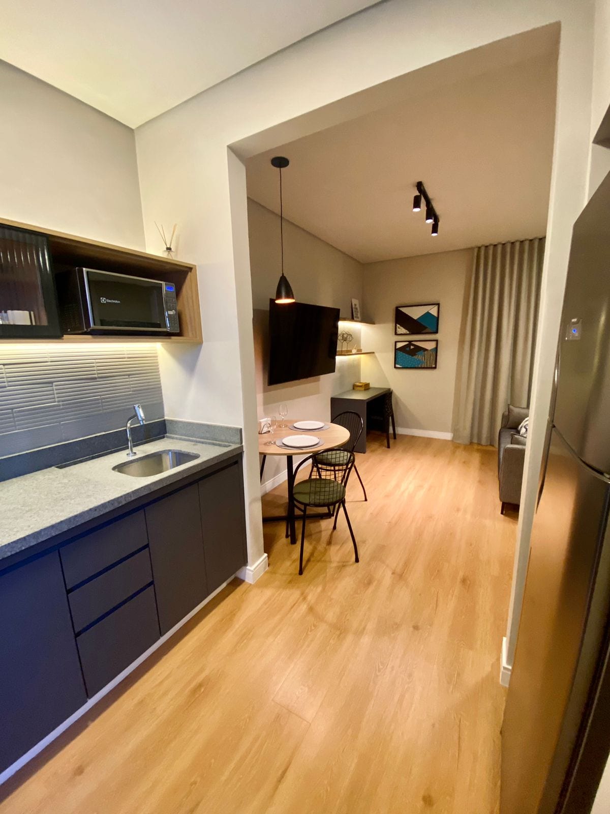 Moderne Wohnung mit 2 Schlafzimmern und 2 Badezimmern (eins davon ist ein Suite). Smart-TV im Wohnzimmer, um Ihre Streamings zu genießen. Das geräumige Wohnzimmer ist perfekt zum Entspannen und verfügt über eine komplette amerikanische Küche. Privilegierte Lage in der Nähe von USP, Centrinho und CPO, mit einfachem Zugang zu Restaurants, Bars, Märkten und Einkaufszentren, ideal für diejenigen, die Komfort und Funktionalität in einer lebendigen städtischen Umgebung suchen.