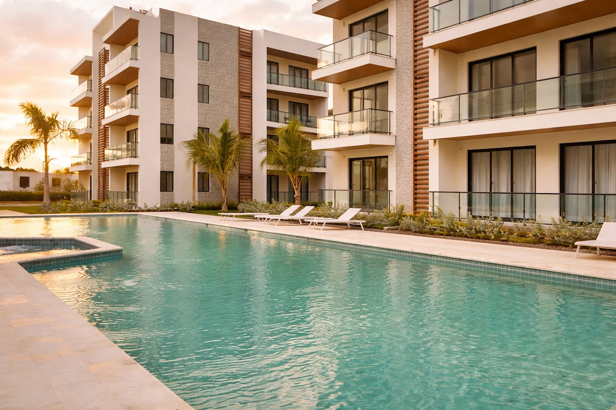 Wake up each day to a relaxing pool view right in front of you. This elegant two-bedroom apartment blends comfort and style, helping you disconnect from the daily routine. Located in a residential community with pools, jacuzzis, a gym, and access to Vistacana’s artificial beach, you’ll find restaurants, supermarkets, and a golf course just steps away. Plus, you’re only 5 minutes from Downtown Punta Cana, where shopping centers, Coco Bongo, restaurants, and water parks await.
