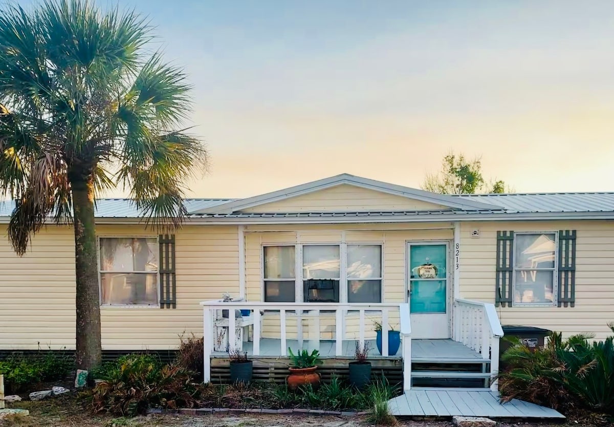 In einer ruhigen Sackgasse, nur einen kurzen Spaziergang vom schönen, weißen Sandstrand von St. Joe Beach mit eigenem Strandzugang entfernt. Grille im eingezäunten Hinterhof. Einkaufsmöglichkeiten, Imbisswagen und Nachtleben sind zu Fuß erreichbar. Port St. Joe liegt eine 12-minütige Fahrt von Einkaufsmöglichkeiten, Restaurants und Veranstaltungen entfernt. 1 Meile zum Veterans Park mit Pickleballplätzen, Spielplatz, Hundepark und Strandzugang. Panama City Beach ist eine Stunde westlich und Appalachicola ist 30 Minuten östlich. Komm und genieße die Vergessene Küste!