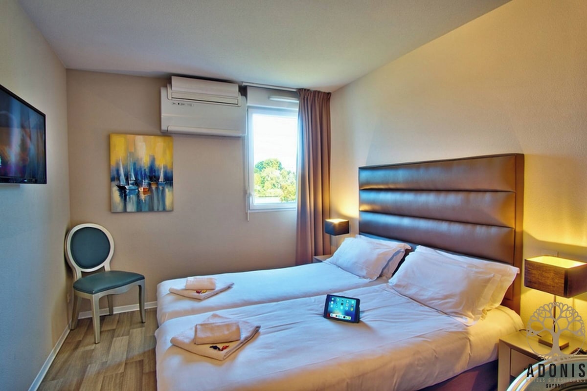 Don't miss out on exploring Bayonne, the capital of the Basque country! Our newly renovated complex offers fresh, modern and spacious rooms with high-quality beds! Our soundproof Single Room is the ideal choice for those seeking tranquillity and easy access to the motorway, the city center, the airport and the region's main attractions!
