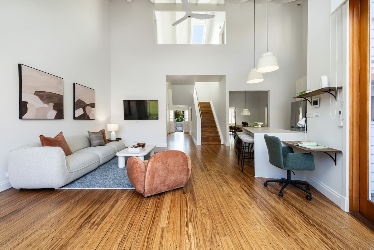 Designed by architect David Edelman, our 5-bedroom, 2.5-bath home is set down a long driveway with electric gates, offering a quiet family retreat. The open-plan kitchen, living, and dining areas flow to a sunken lounge/TV room with a 10-seater table. Outside, the pool and terrace are surrounded by gardens, creating a relaxed tropical feel. Our home has split-system AC, ducted heating, and free parking for six. It’s a comfortable, welcoming place for families or groups to stay in Brighton East.