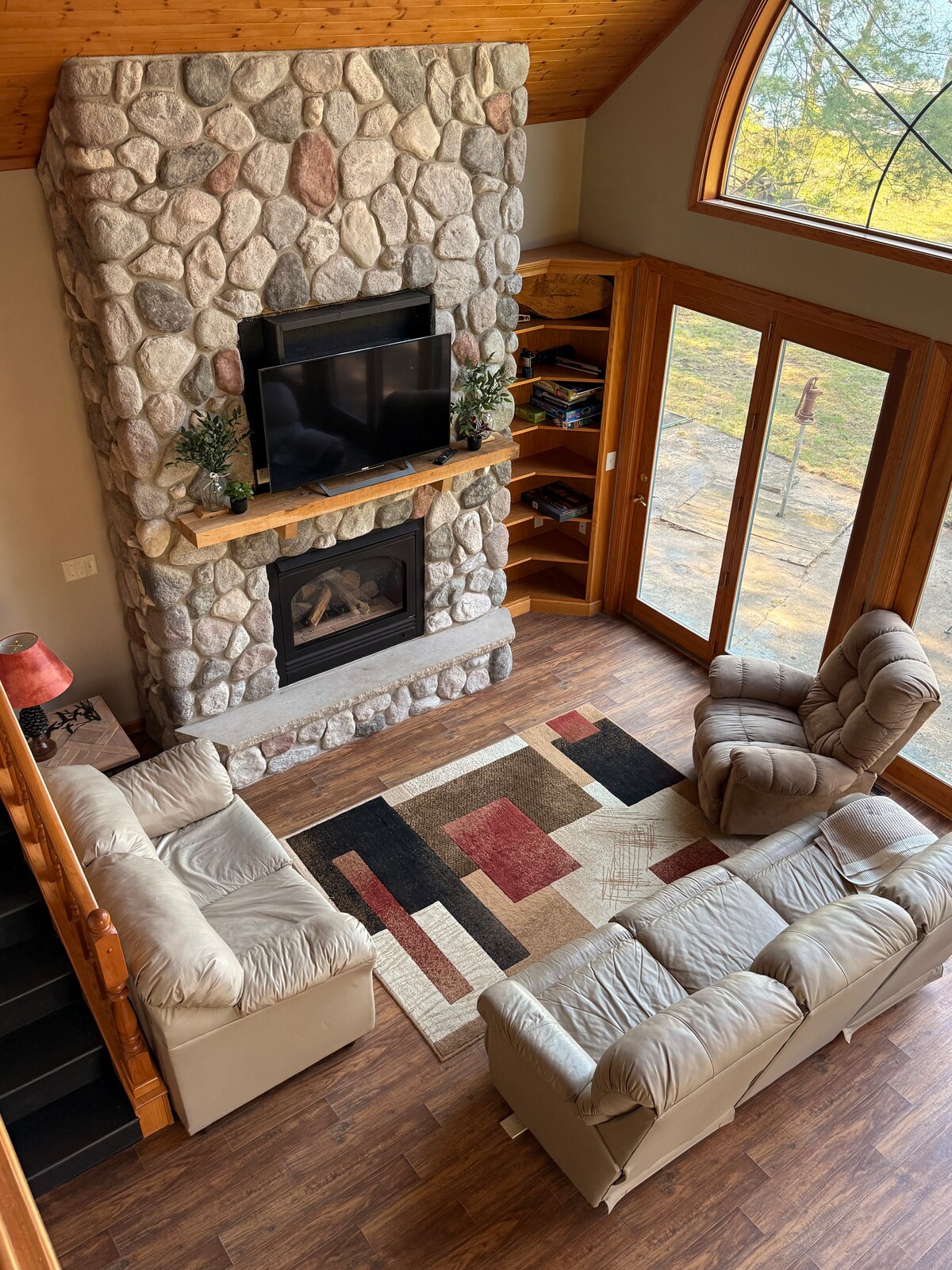 Entspanne dich und genieße eine wunderschöne malerische Unterkunft, die sich in einer ruhigen, bewaldeten Nachbarschaft in Appleton befindet. Sie hat alle Elemente, in der du in der Ferne in der Unterkunft in der Ferne bist. Fast 3.000 sq. ft. Die Gäste haben Zugang zu allen Wohnbereichen, moderne Küche, Vollmauerkamin, gewölbte Decken, große Terrasse und Whirlpool. Genieße den Hinterhof mit einer geräumigen Terrasse, einem Whirlpool für 7 Personen und einer Feuerstelle im Freien. Fünf Minuten vom Flughafen, der Innenstadt und 20 Minuten von EAA entfernt. Inklusive Kaffee und Frühstück.