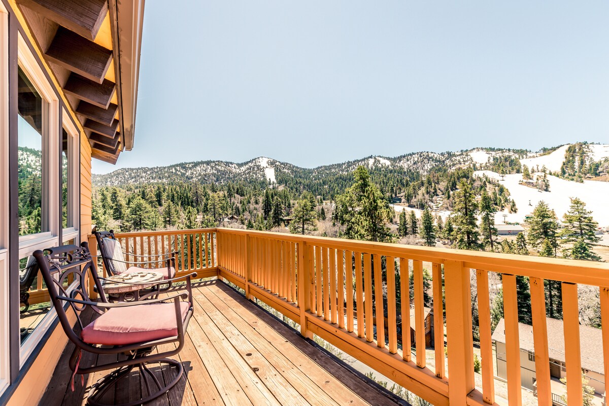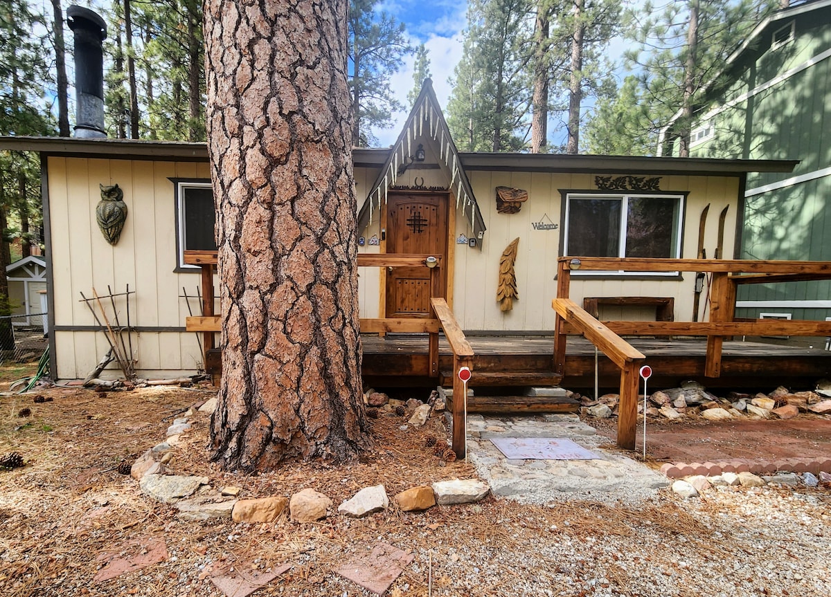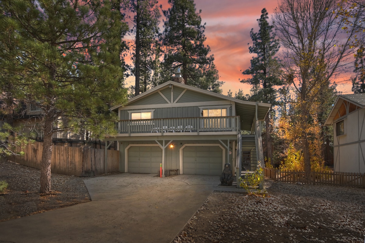 Cozy Big Bear cabin w/ fireplace, luxury tub & games for all ages. Walk to Sugarloaf Park & Big Bear High School’s new stadium — no parking hassle! Short drive to Snow Summit & Bear Mountain for Ikon Pass holders, hiking trails, bike paths, Big Bear Lake adventures, and local dining not too far away. Coffee Bar, Fast Wi-Fi, Smart TVs, fire pit & BBQ, cozy mountain vibes, pet-friendly, family-ready, and fully equipped for a much needed relaxing mountain getaway. Peaceful surroundings