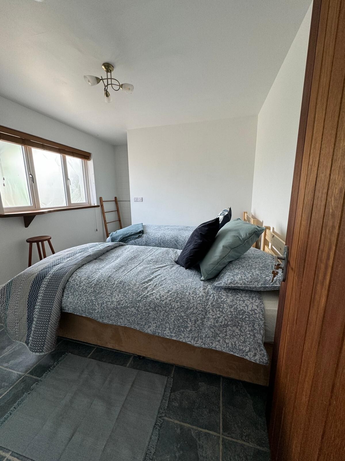 Zimmer im Erdgeschoss mit Doppel- und Einzelbett, das Badezimmer ist ein eigenes. Wir haben ein weiteres Gästezimmer im Obergeschoss, das 3 Personen beherbergt, suche nach „Zimmer mit Seeblick“ Außerdem stehen 3 traditionelle Mezzanine-Apartments zur Verfügung. Um alle unsere 5 Inserate zu sehen, klicke bitte auf unser Gastgeberbild und scrolle nach unten. Frühstück inklusive - frisch gepresster Orangensaft, frisches Obst, Müsli, Porridge, Joghurt, frische Eier vom Bauernhof, hausgemachtes Sodabrot und Scones, Tee und Kaffee. Kostenlose Parkplätze auf dem Grundstück
