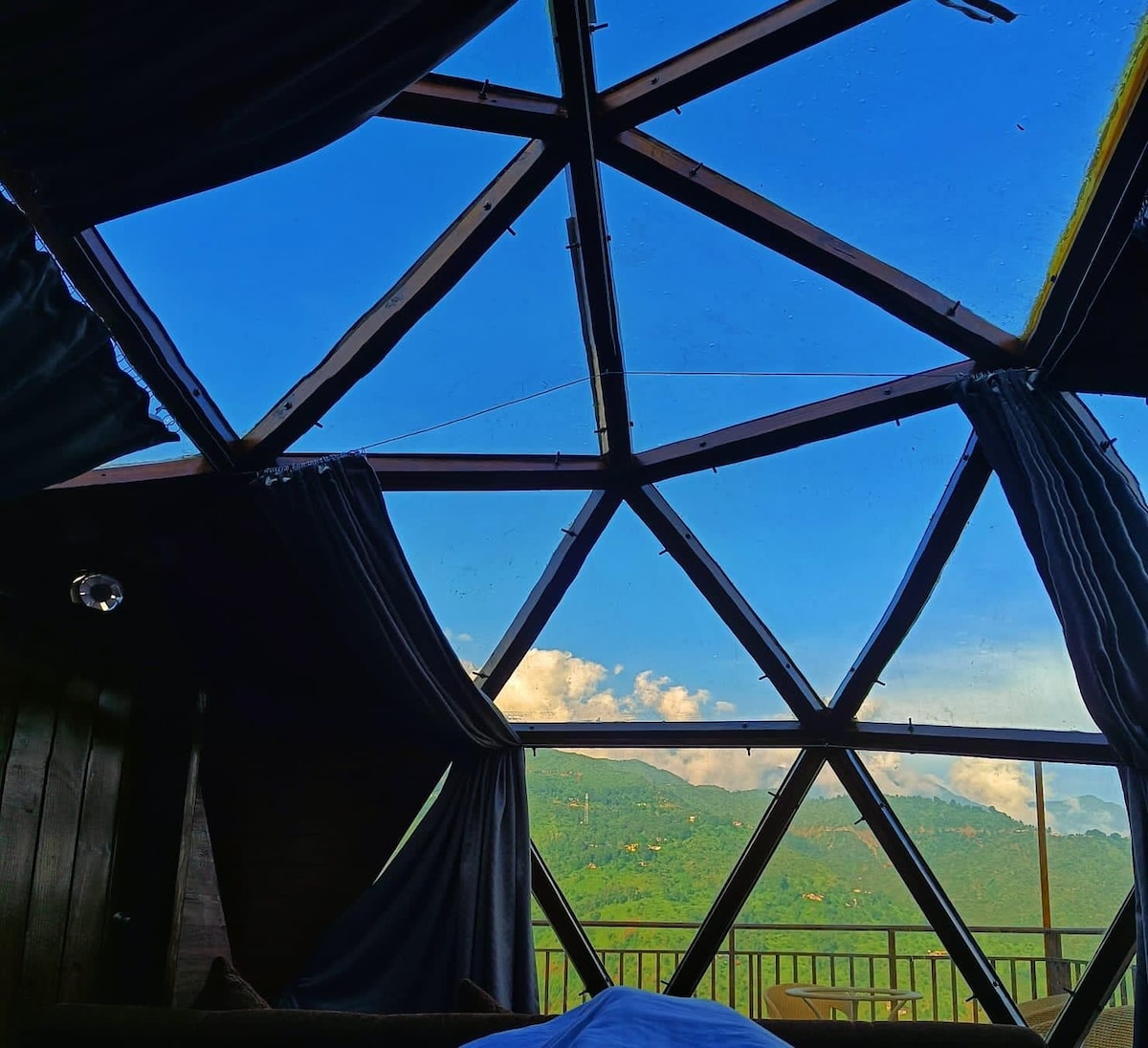 (All your favorite meals available in the area, would be procured specially for the guest along with local siteseeing package) Luxury redefined at the wooden geodesic domestay. Experience the harmony of nature and comfort amidst the breathtaking panoramic mountain vistas. Distance from main attractions: 900 meters from HH Dalai Lama, 1 km walk from Skyway, 900 meters from Mcleodganj mall road. Big suv car drive in and car parking available. Wifi is available. Airport 16 km, 20 minutes drive.