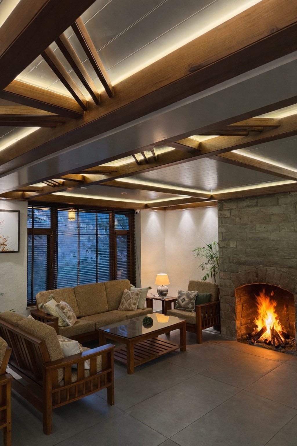 Some places make you pause at the door. The Wooden Chalet,Manali is one of them — a private 4 bedroom chalet in Prini, where the living room rises 25 feet to meet a wall of glass, & beyond it, the Rohtang's snow peaks fill every window like a painting that changes hour by hour. This is not a hotel with a view. It is your own private Himalayan home — with a chef who cooks fresh from an in-house menu, a caretaker who anticipates & the kind of stillness that most people travel a long way to find.