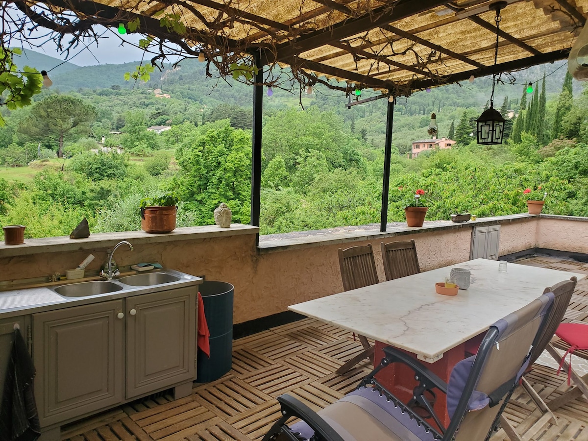 Chalet au cœur des oliviers, calme, vue montagne