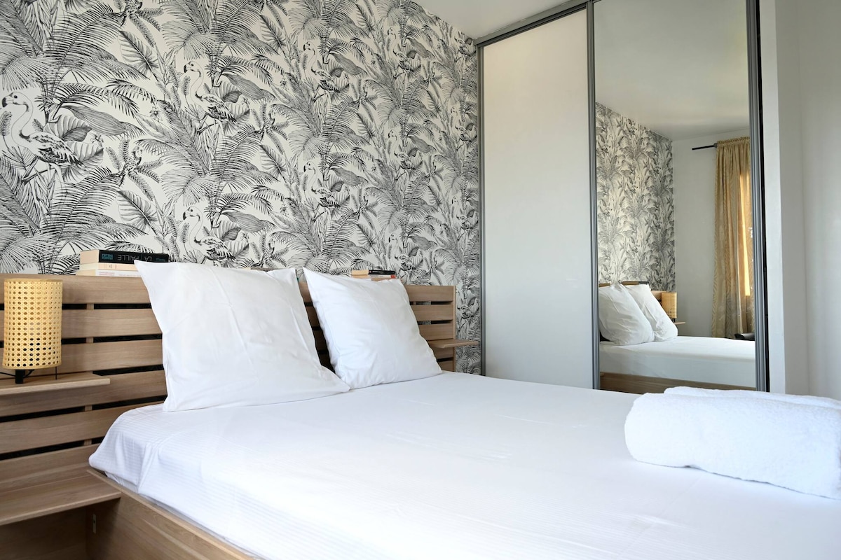 Genießen Sie eine renovierte, elegante und zentrale Unterkunft mit einem hellen Wohnzimmer mit offener Küche und zwei ruhigen Schlafzimmern mit Doppelbetten. Die Küche ist mit Induktionskochfeld, Backofen, Geschirrspüler und Mikrowelle ausgestattet. Ein Wäschetrockner steht zur Verfügung. Die Wohnung verfügt über einen Balkon und einen Parkplatz im Untergeschoss. Sie befindet sich im Stadtzentrum, 5 Minuten zu Fuß von der Place de Jaude entfernt. Buchung für 1 bis 4 Personen für mindestens 2 Nächte