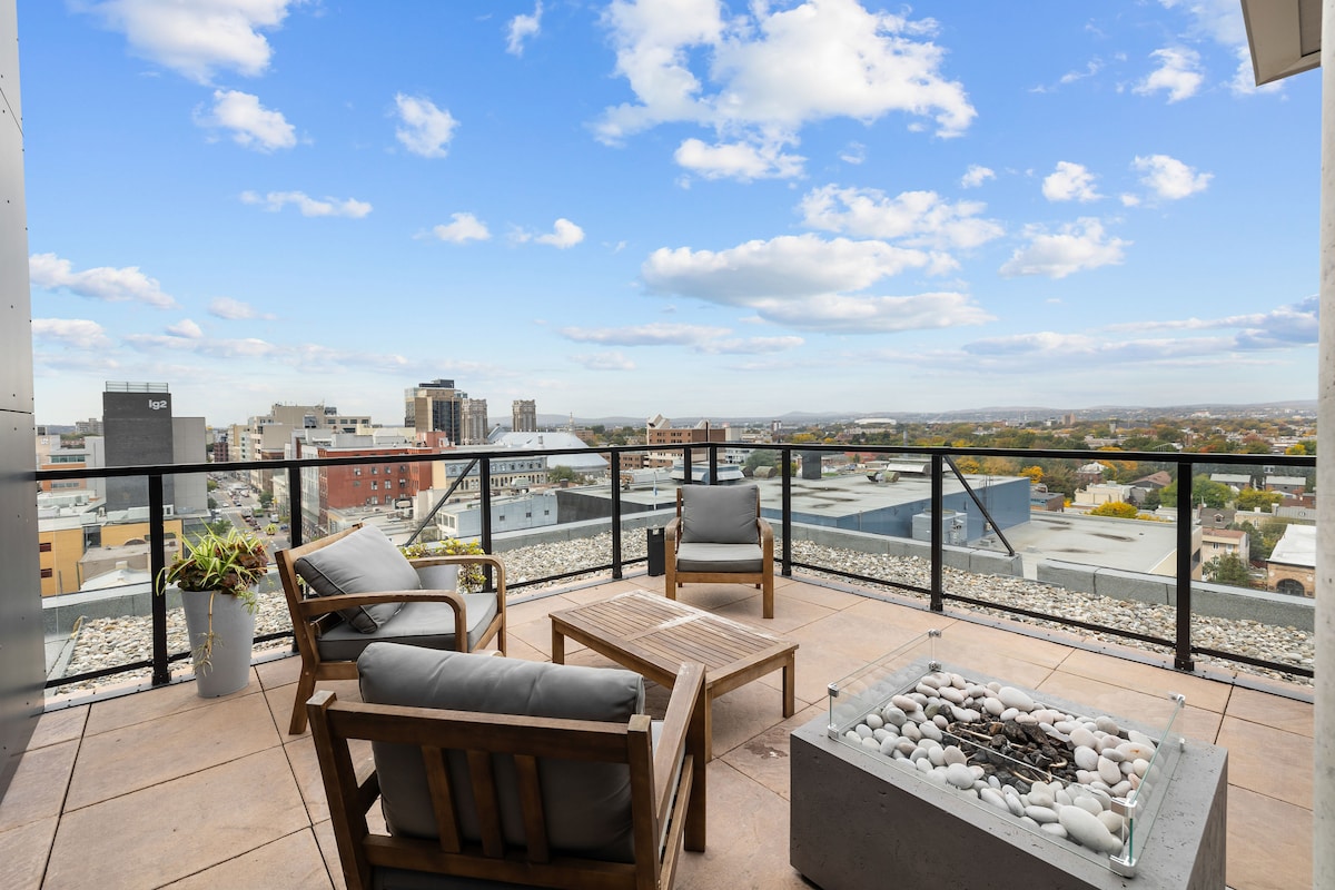 Das Panorama-Penthouse von LE wird dich mit seiner atemberaubenden Aussicht auf das alte Québec und seinen einzigartigen Stil bezaubern. Es wurde 2022 nach den besten Industriestandards erbaut und sorgt dafür, dass du einen angenehmen Aufenthalt hast. Das Schwimmbad, die Grills und die Dachterrasse sind ein „Muss“ und bieten eine atemberaubende 360 Grad Aussicht. Innenparkplätze und der Fitnessraum sind sehr praktische Vorzüge für einen perfekten Aufenthalt.