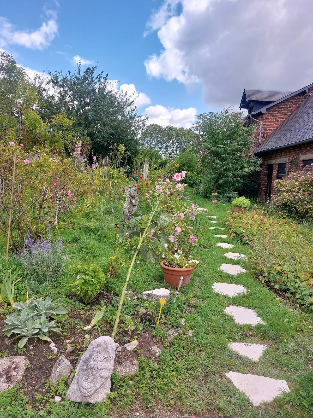 Reisende mit Hund kontaktieren mich vor der Buchung! Lassen Sie sich von Doudou, unserer Katze und Hotelier (oder mir selbst, wenn er beschäftigt ist) in den Gourmet- und etwas wilden Garten, den kleinen Fluss am Ende des Gartens, mit den freilaufenden Hühnern, den Skulpturen... dann das Haus und Ihre Zimmer führen. Hier werden Sie von den Glocken der Kirche und dem Gesang des Hahns beim Aufwachen eingelullt, der Fernseher ist der Holzofen. Wir freuen uns darauf, Sie in unserem kleinen idyllischen und freudig unvollkommenen Paradies begrüßen zu dürfen