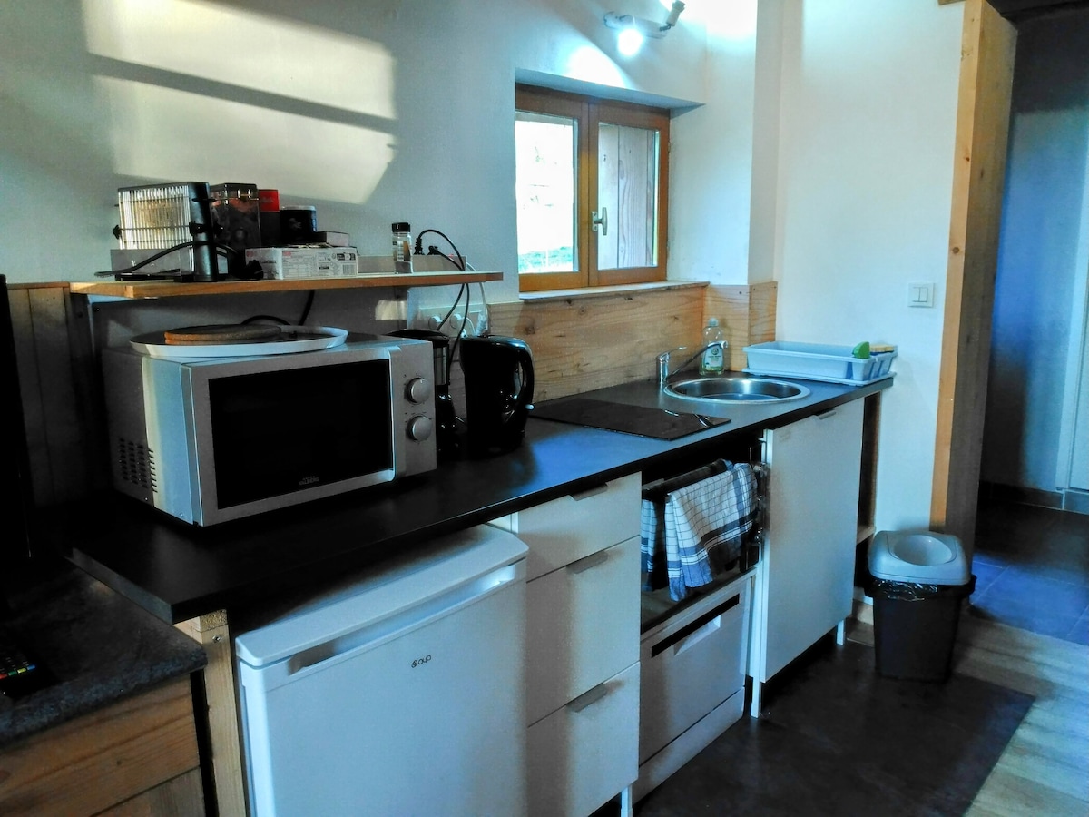 Studio de 30m², état neuf, entrée indépendante, au calme avec coin jardin privatif. Sentiers de randonnée au pied de la maison et nombreux points d'intérêt touristiques à proximité. Pleine campagne, sans vis-à-vis, le réveil est assuré par le chant des oiseaux. Avec un peu de chance vous pourrez être témoins de magnifiques couchers de soleil ! Nous possédons un coq et des oies... Boulangerie, pharmacie et restaurants à 8 mn et grande surface à 10 mn.