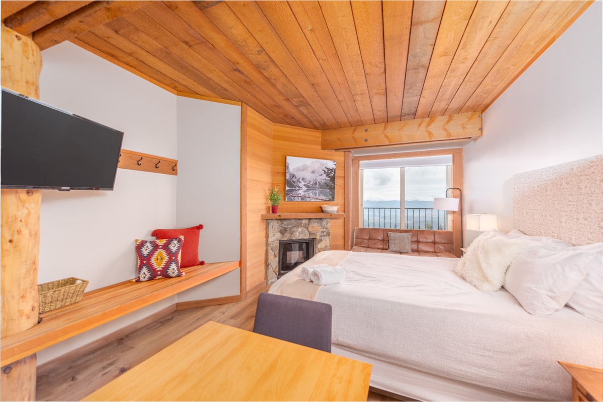 Willkommen in unserer komplett renovierten Wohnung in Big White! Genieße den atemberaubenden Blick auf die Berge direkt an der Perfection-Skipiste mit echtem Zugang zum Ski-in/Ski-out. Der offene Wohnbereich verfügt über ein gemütliches Schlafsofa, einen linearen Kamin und eine voll ausgestattete Küche . Entspanne dich auf der Terrasse mit einem Grill nach einem Tag auf der Piste. Das Schlafzimmer verfügt über ein Etagenbett mit Queensize-Doppelbett. Mit beheizten Böden, einem individuellen Schuhtrockner und einem Abstellfach für deine Ausrüstung ist dieser gemütliche Rückzugsort perfekt für deinen Kurzurlaub in den Bergen.