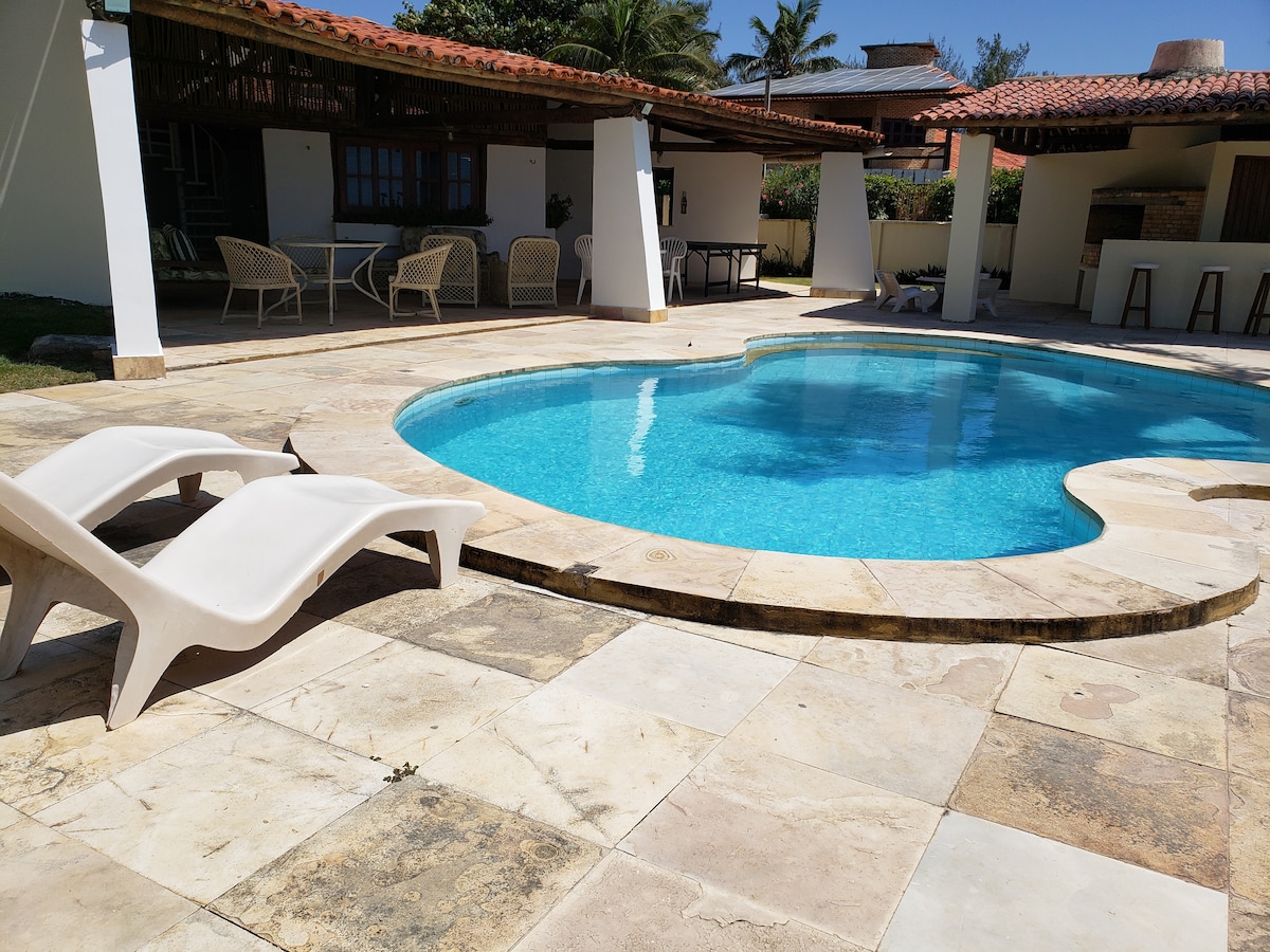 Casa ampla e confortável com fácil acesso a praia, com deck e churrasqueira, piscina, 5 suítes (3 internas/2 externas), 7 banheiros, garagem e quadra de beach tênis/vôlei. Permitido animais, sendo proibido a permanência deles nas camas e sofás. Permitido fumar apenas na área externa da casa. Necessário levar lençóis de se cobrir, toalhas, e caso queiram, redes. Duas suítes possuem ar condicionado e as outras tem ventiladores. The hosts speaks english.