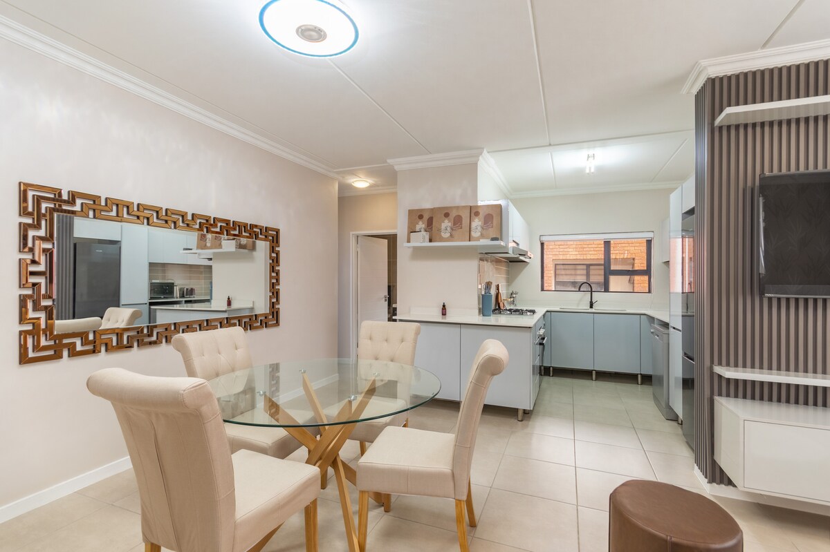 Erlebe die perfekte Mischung aus Stil und Komfort in dieser atemberaubenden Wohnung im 8. Stock im prestigeträchtigen Vorort Bedfordview. Genieße atemberaubende Aussichten und makellose Innenräume in diesem neuen Hochhaus. Als Superhost mit einer nachgewiesenen Erfolgsbilanz laden wir dich ein, diese moderne Designer-Wohnung zu genießen. Jedes Detail wurde sorgfältig kuratiert, um einen komfortablen und stilvollen Aufenthalt zu gewährleisten, was es zum perfekten Rückzugsort für Profis und anspruchsvolle Reisende gleichermaßen macht.