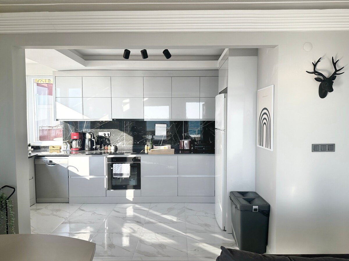 Willkommen in unserem Haus mit 2 Schlafzimmern in Alanya, nur 1 Minute vom Cleopatra Beach entfernt! Unser Zuhause ist perfekt für Familien und bietet einen atemberaubenden Blick auf das Mittelmeer. Genieße eine komplett ausgestattete Küche und ein gut gestaltetes Wohnzimmer mit bequemen Sitzgelegenheiten. Entspanne dich auf dem Balkon und genieße die schönen Sehenswürdigkeiten und Geräusche des Meeres. Buche noch heute deinen Aufenthalt für einen perfekten Strandurlaub in Alanya!