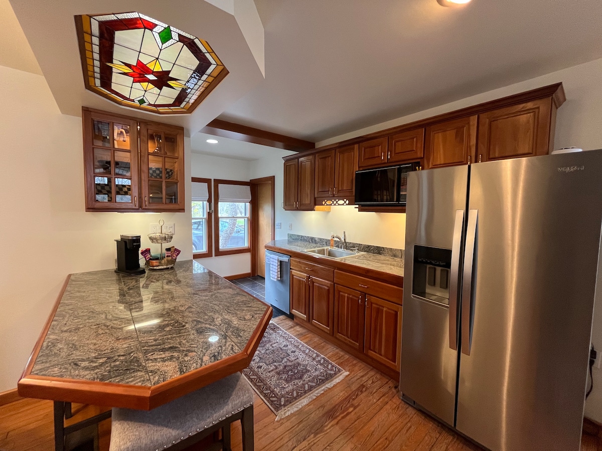 Übernachte in unserem gemütlichen, haustierfreundlichen Fluss-Rückzugsort am Ufer des Flusses Seneca Mit allen Annehmlichkeiten, einschließlich zentralem AC-Heizkabel, Highspeed-Internetzugang, mehrere Parkplätze. Unser Preis pro Nacht deckt 4 Gäste ab Luftmatratze/Pack N Play auf Anfrage Eingang Schlüsselloser Zugang Küche Komplette Küche Mikrowelle Geschirrspüler Töpfe/Pfannen Koch-/Backgeräte Schlafzimmer 1 Schreibtisch mit Queen-Size-Matratzenkommode Schlafzimmer 2 Vollständige Matratze mit zwei Einzelbetten Wohnzimmer 4K 50" Smart TV Gaskamin