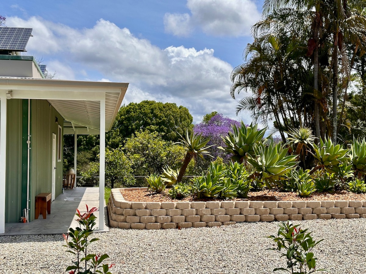 Escape the world! A serene, peaceful, luxurious, private experience for couples in the peaceful and divine haven of the Promised Land, just outside quirky Bellingen. Views over Gondwana Land. Awake to the birdsong. 5 minutes to Never Never river swim holes. Fully airconditioned, serene candle lit outdoor bath, rain shower, fire pit and internal fire place (winter use only), dishwasher, BBQ, HD television, Netflix, Starlink unlimited internet, home made bread. Solitude! Indulge!