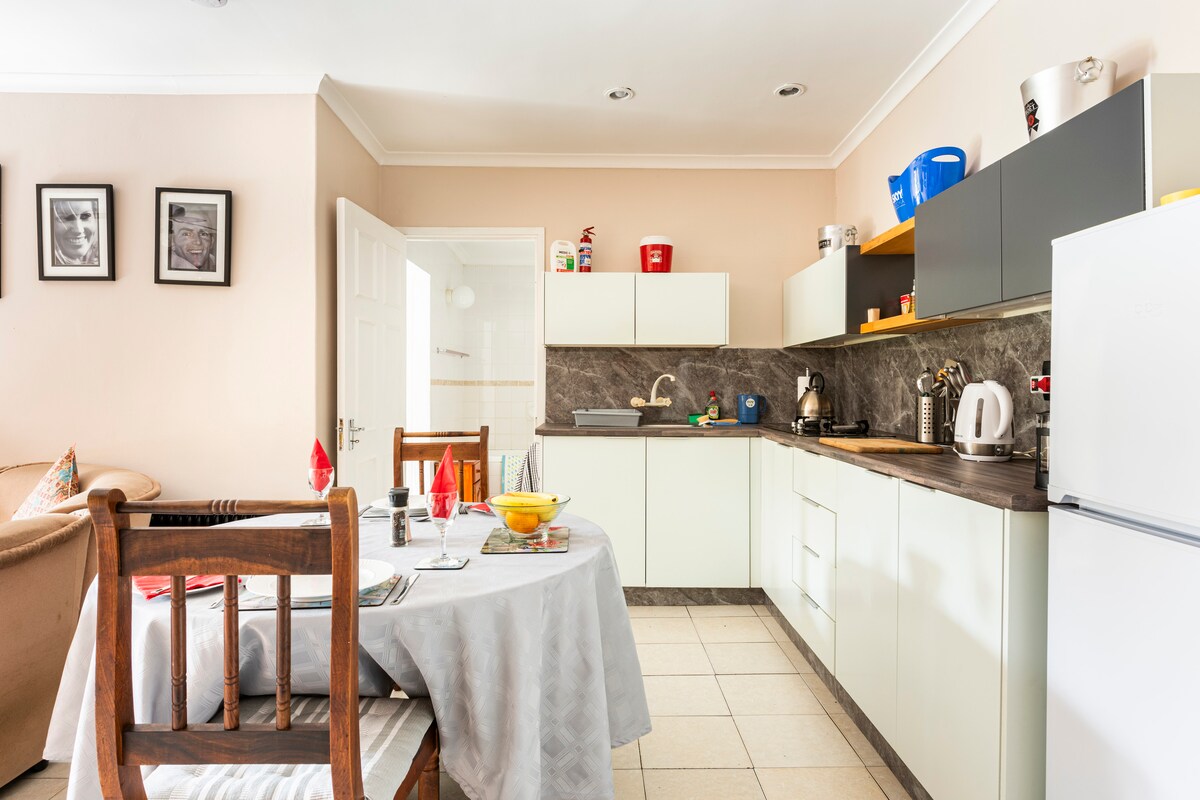 Self-contained cottage nestled in the picturesque neighborhood of leafy Constantia. Conveniently located, within walking distance of the Shopping Center and close to the renowned Constantia Vineyards. Immerse yourself in the ambiance of the large garden, complete with a sparkling swimming pool . There's a trampoline and swings nestled among the trees, providing endless fun and entertainment. The property is safeguarded by 24-hour security. -Inverter for Wifi, TV, lights -Gas Hob
