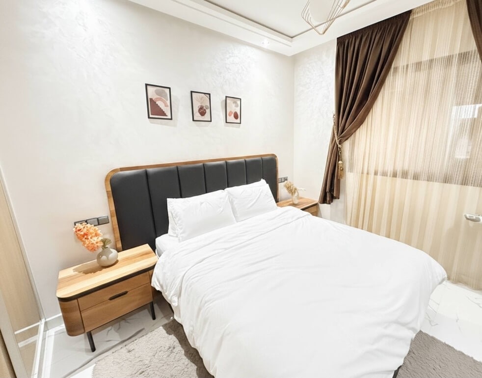 A comfortable and modern apartment located in a quiet area, perfect for a relaxing stay. The apartment features three air conditioners to ensure comfort at all times, two bathrooms, including one en-suite bathroom with a modern shower. It also offers fast Wi-Fi and a smart TV, allowing you to enjoy your favorite channels and streaming apps. The space is thoughtfully designed with a stylish, modern touch, making it ideal for families, or business travelers.