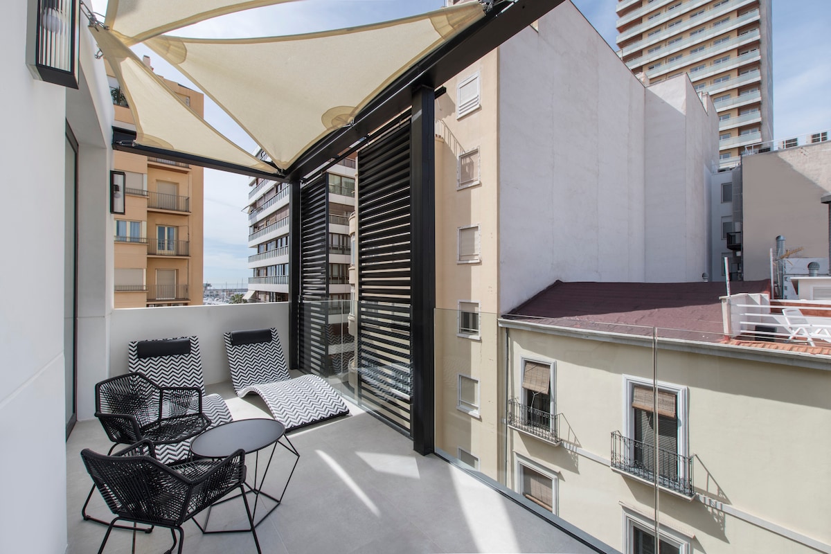 Wunderschöne 4-Zimmer-Wohnung mit modernen Designermöbeln von lokalen Handwerkern mit spektakulärem Blick auf den Strand Levante. Voll ausgestattete Küche, die im Wohnzimmer integriert ist, mit einer großen Terrasse mit Meerblick. Vier Schlafzimmer und zwei komplette Badezimmer mit einer „Regendusche“. Genieße ein luxuriöses Erlebnis in dieser zentralen Unterkunft.